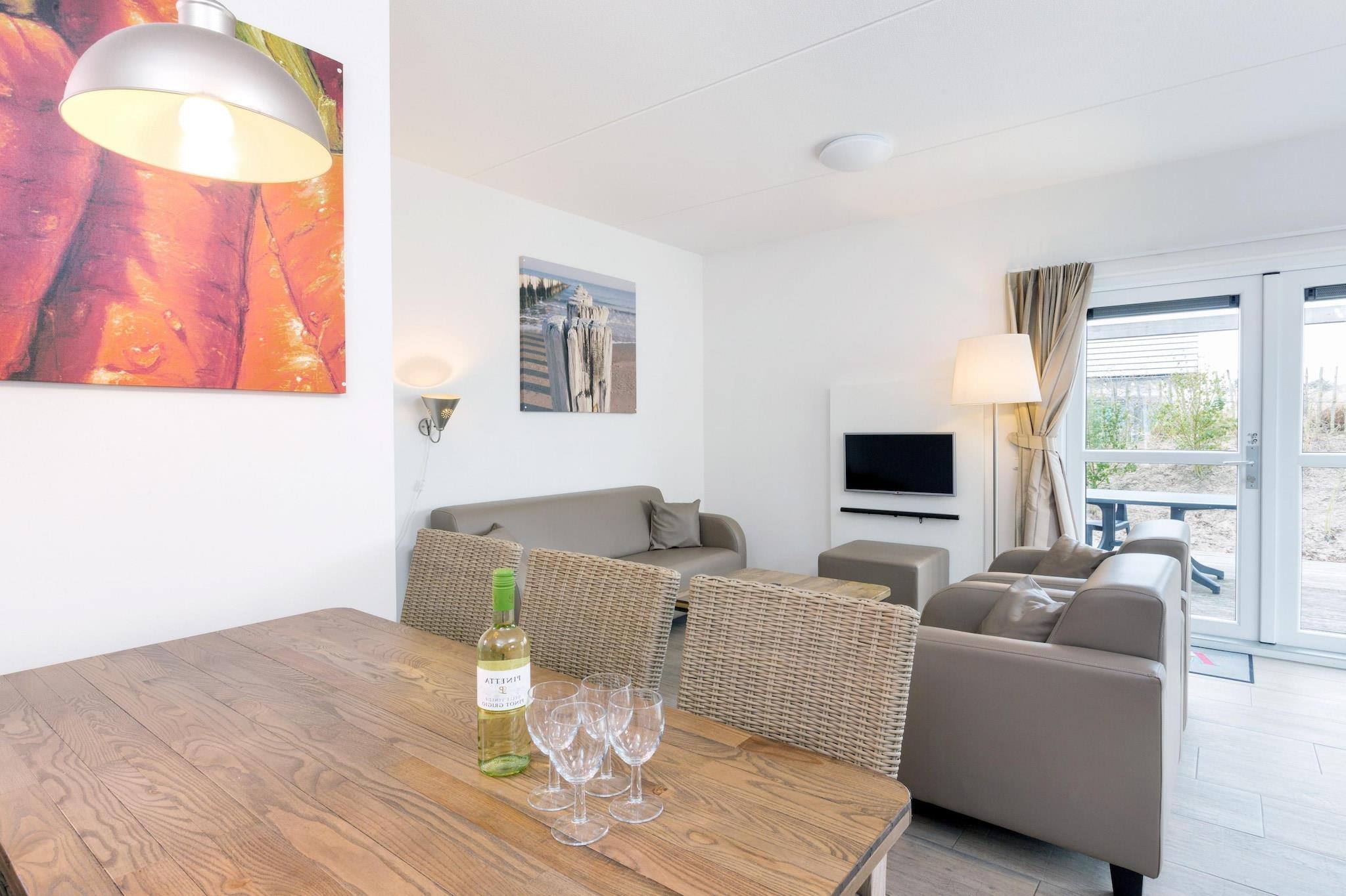 Denne stilfulde villa til 6 personer ligger gemt væk i den charmerende kystby Ouddorp og er den perfekte blanding af afslapning og moderne design – og så er den kæledyrsvenlig! Det lyse og luftige opholdsrum har gulvvarme, Smart TV og komfortable siddepladser, hvor du kan slappe af efter eventyr ved stranden. Det åbne køkken er udstyret med opvaskemaskine, køleskab med fryser, kaffepad-maskine og alt det nødvendige til at spise hjemme. Med to soveværelser med boxmadrasser (arrangeret som dobbeltsenge eller enkeltsenge) og et tredje med en køjeseng er indretningen ideel til familier eller vennegrupper. Villaens private have og terrasse giver dig og din firbenede ledsager plads til at slappe af udendørs, mens Ouddorps hundevenlige strande og klitter kun ligger få minutter væk. Tag en malerisk tur gennem Kwade Hoek naturreservat, eller lad din hund løbe frit i de udpegede områder uden snor nær Brouwersdam. I de varmere måneder er der ofte lokale arrangementer med kæledyrsvenlige pop-up-markeder og madboder, der er perfekte til en dag ude med din firbenede ven. Efter en dag i havluften kan du udforske byens charmerende spisesteder. Spis fisk og skaldyr med udsigt på Strandpaviljoen C-side eller nyd en afslappet bid mad på kæledyrsvenlige steder som Brasserie 't Praethuys. Med privat parkering til to biler, vaskemaskine og tørretumbler for ekstra bekvemmelighed og alt, hvad du har brug for til en afslappet ferie ved kysten, har denne villa alle ingredienserne til et mindeværdigt ophold – for dig og dit kæledyr!