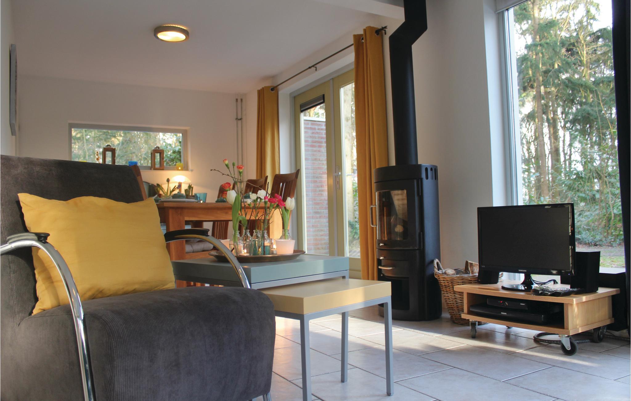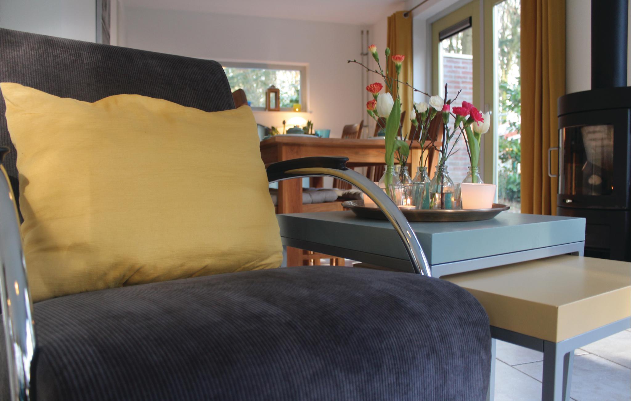 Det ligger i en park med en fælles legeplads. Den rummelige og moderne stue har en smuk brændeovn - ideel til de kolde dage! Det åbne køkken er fuldt udstyret og perfekt til lækker madlavning. Der er en legekasse til de små. Badeværelset med boblebad er i stueetagen.