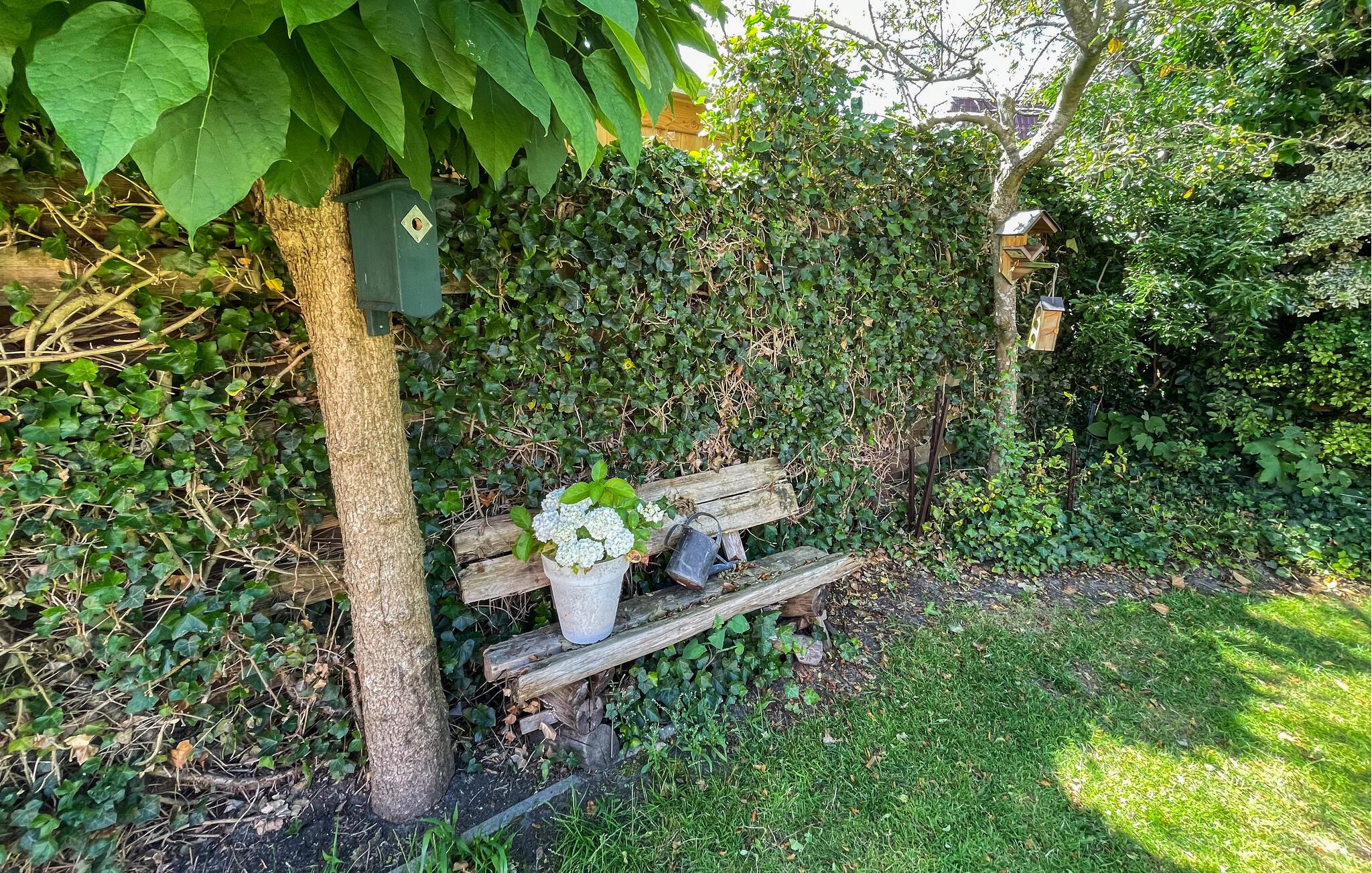 Slap af på den hyggelige terrasse og lad blikket vandre over den idylliske have – her kommer man helt automatisk ned i tempo.