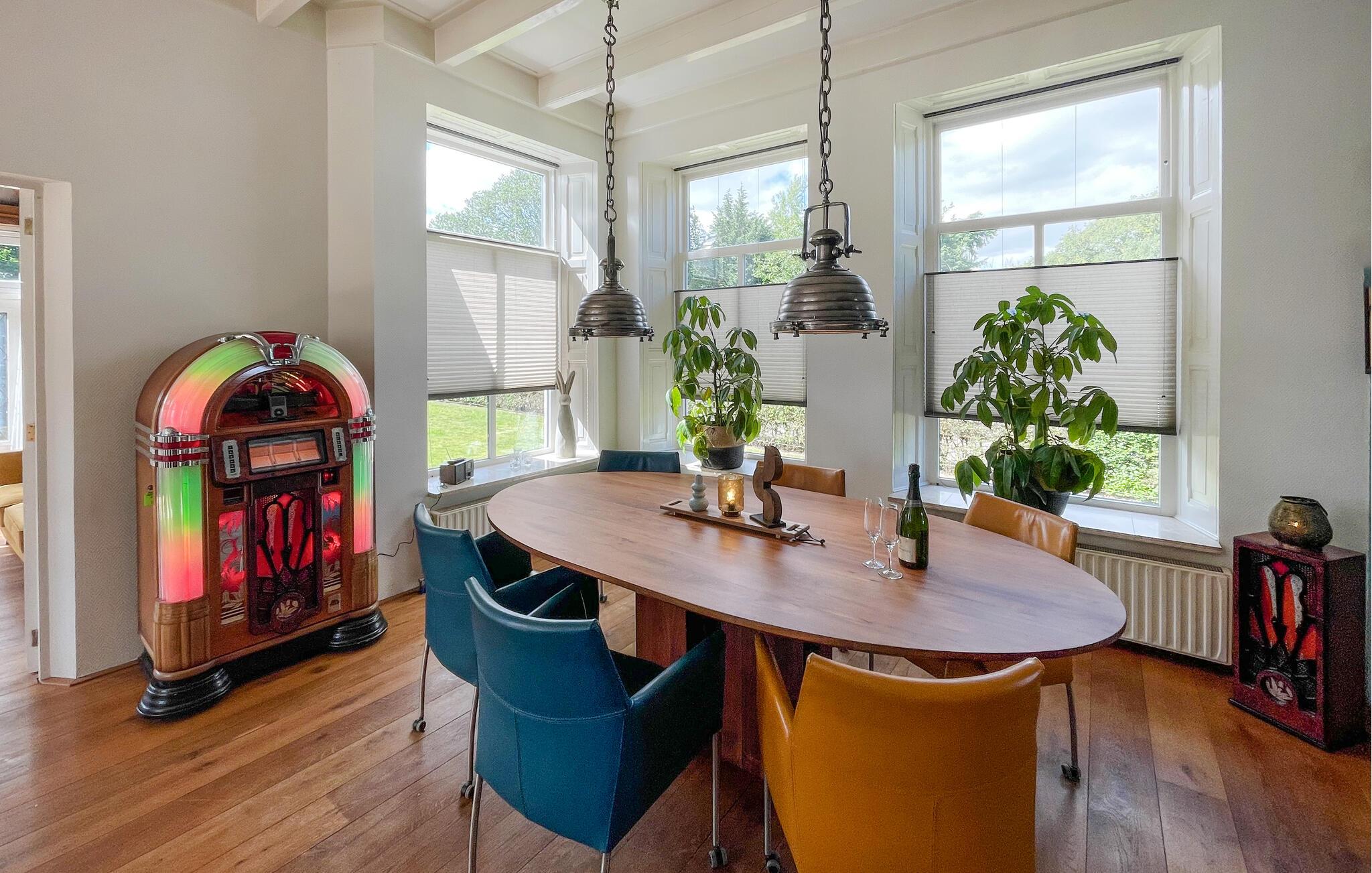 Nyd en ferie i denne rummelige og smagfulde bolig i Oudeschoot, som er noget særligt med sin stilfulde indretning og et strejf af luksus. Det åbne boligkoncept kombinerer harmonisk den komfortable opholdsstue med det elegante køkken, hvor I kan fremtrylle jeres yndlingsretter. De store vinduespartier giver masser af naturligt lys og skaber en behagelig atmosfære.