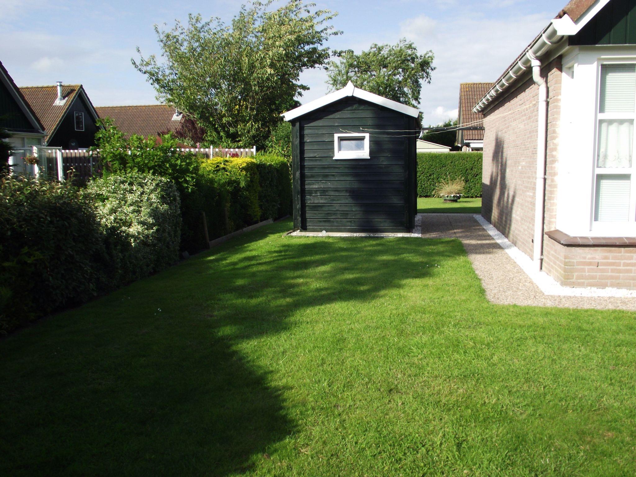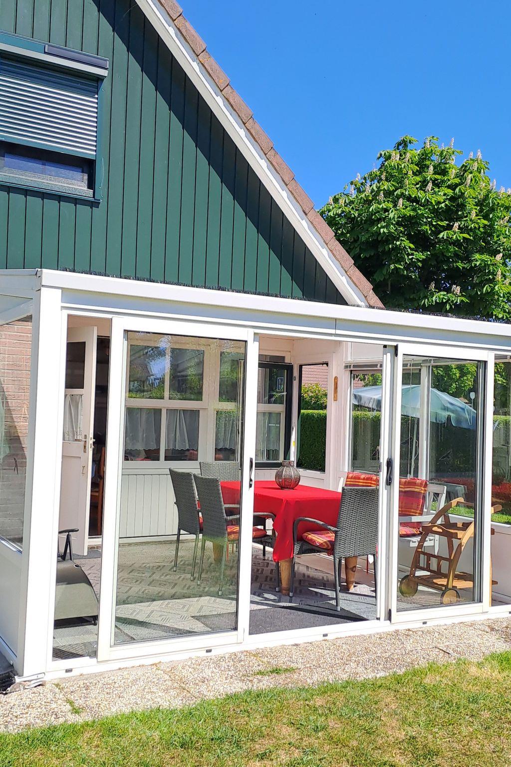 The fully enclosed property is fenced towards the road and the neighbour. On the other two sides, the property borders on water. There are hedges and an 80cm high fence securing the sloot (surface water ditch). Directly connected to the holiday home is a conservatory, which can be opened with sliding doors. This has seating, deckchairs, parasols and a charcoal barbecue. There are two private outdoor car parking spaces in front of the house. There is also a shed on the property, which can be used to store bicycles or other items. In the summer months, the holiday complex offers a swimming pool (10 x 25 m) for communal use free of charge, which is approx. 50 m from your holiday home.