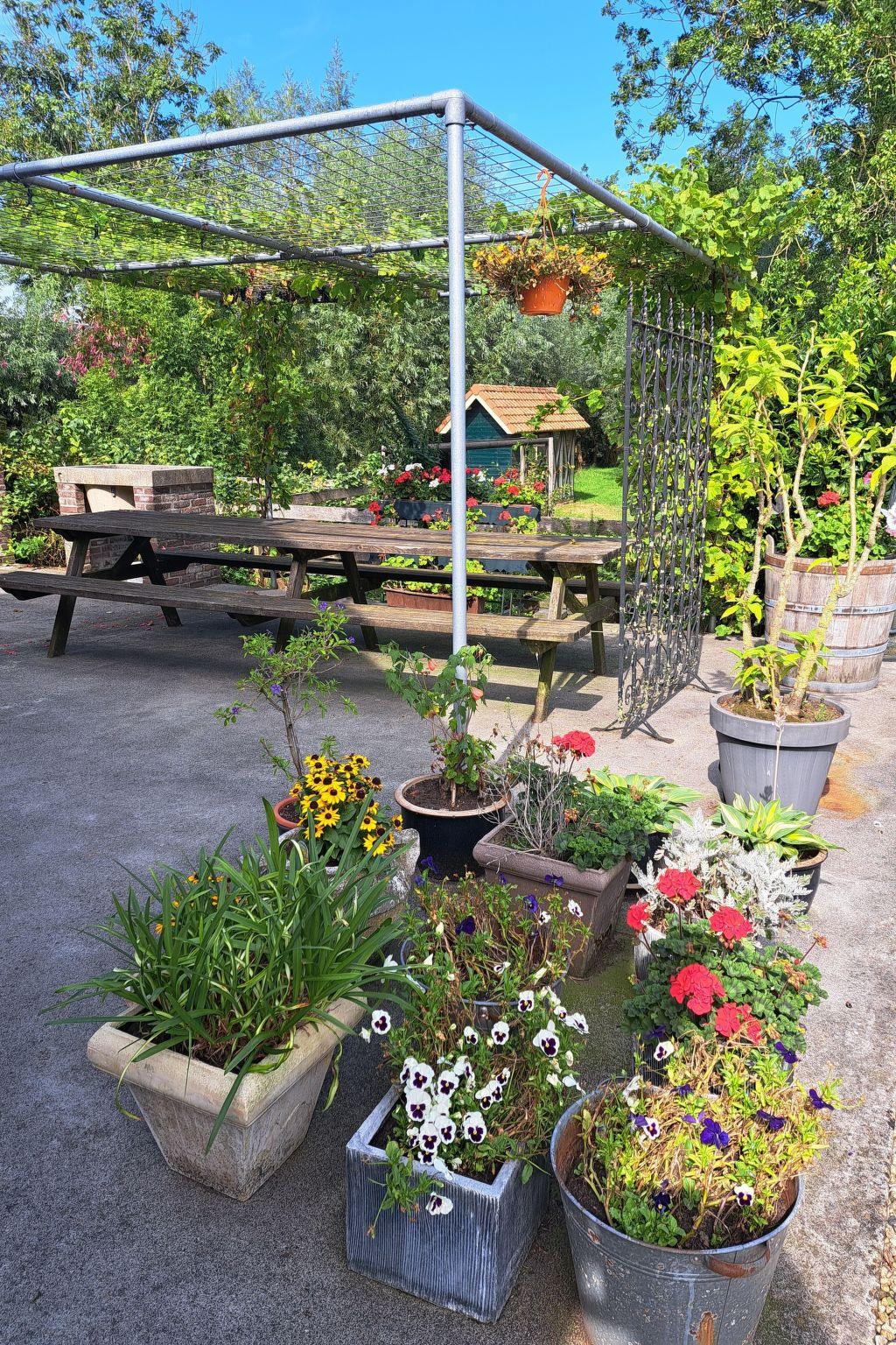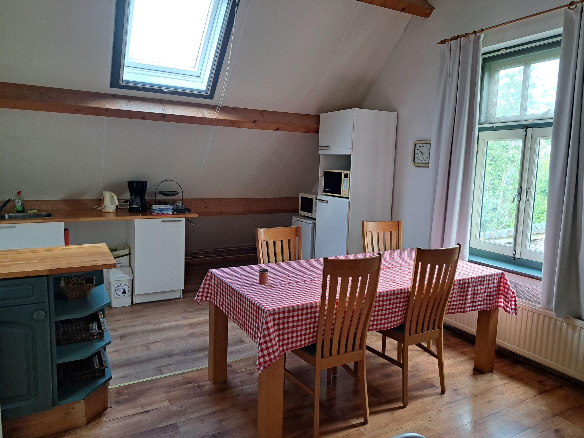 This is a detached holiday home of about 100 m², suitable for up to six people, with its own entrance and lots of privacy. You have access to a combined living/bedroom, with a double bed and two single beds, Wi-Fi, satellite TV and DVD player, a wardrobe, desk, sofa, 2 bucket seats, side tables and TV chair. In the bedroom there are two single beds and a cot, there is a large living kitchen with microwave, oven, stove and fridge and a bathroom with shower, toilet and washbasin. Washing machine available. Upon request, a farmer's breakfast with regional and organic products can be served in the conservatory. Packed lunches are also available on request. Longer stays, up to a maximum of six months, are possible on request. Rental bicycles can be requested in advance.