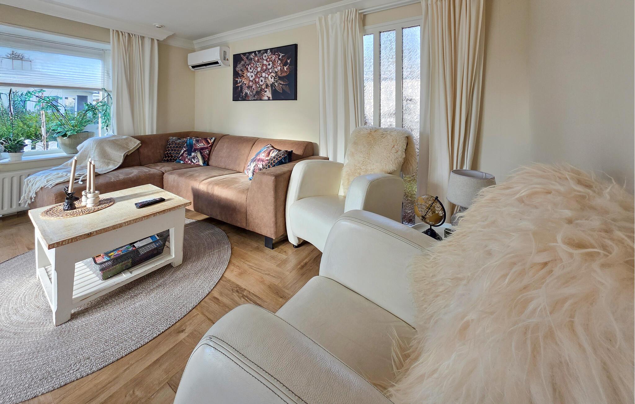 Dette kærligt indrettede feriehus i Putten tilbyder det ideelle tilflugtssted for alle, der søger fred og afslapning. Nyd morgentimerne med en kop kaffe på den indbydende terrasse, omgivet af en velholdt have og et plankeværk. Den lyse opholdsstue er smagfuldt indrettet og lægger op til at slappe af med sin komfortable sofa og elegante lænestole. Læs en bog, se en film eller nyd udsigten fra de store vinduer. Køkkenet er veludstyret, så I nemt kan tilberede jeres livretter. Så nyd den ved det stilrene spisebord, som giver plads til hele familien.