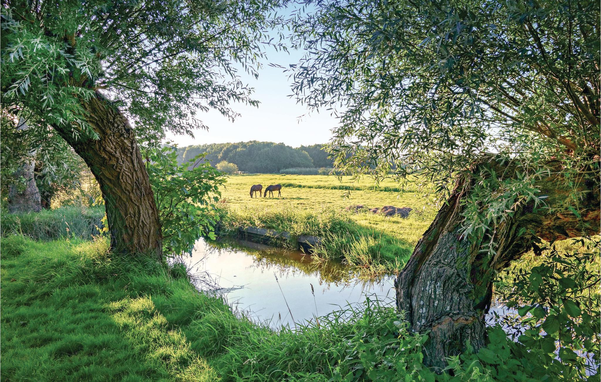 Fra dette komfortabelt indrettede feriehus er der en smuk udsigt over landskabet. Ferieboligen ligger i en skøn have med både åben og overdækket terrasse. Huset er i praktisk et plan og har en dejlig stue til afslappet ophold, med store vinduer der lukker masser af lys ind og en pejs, som er rar, skulle der komme en kølig dag. Her er også et fuldt udstyret køkken, et badeværelse med bruser, toilet og håndvask og tre soveværelser. Soveværelset med dobbeltseng har ikke dør, men er adskilt fra stuen med et gardin. Soveværelset med enkeltseng tjener er også til opbevaring. Der er fine muligheder for at gå tur med hunden i omgivelserne.