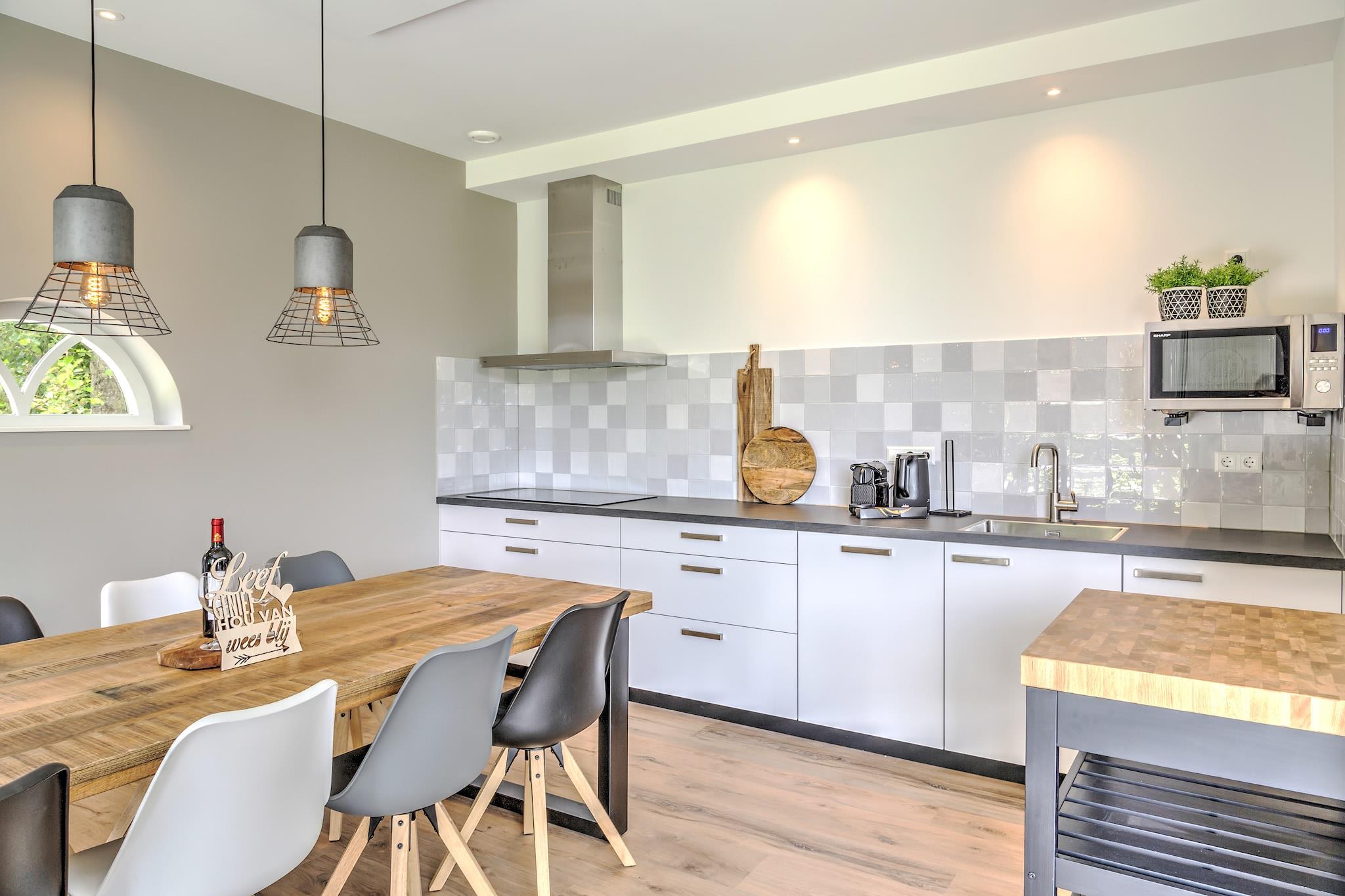 Meget attraktivt fritliggende sommerhus til 10 personer i den store udendørs nær Breda med et moderne, moderne interiør og fuldt udstyret. Feriehus de karkooi er et moderne moderne konverteret tidligere redskabsskur med udsigt over naturreservatet de brede bukser, hvor gæsterne er omfavnet af naturlig enkelhed, skønhed og fred. Du går ind i en rummelig indgang med åbent hems og et læsehjørne, rummelig opholdsstue med tv, stort køkken med induktionskomfur, opvaskemaskine, køleskab, ovn-mikrobølgeovn, kaffemaskine og kedel og et bord til 10 personer inklusive smuk udsigt over naturen . I stueetagen er der et soveværelse til 2 personer og en walk-in bruser og et separat toilet og garderobe På første sal er der 3 soveværelser til 2 personer hver 2 badeværelser (1 med bruser, 1 med badekar) og et separat toilet. I det ene soveværelse er der en trappe til anden sal, til en hems til 2 gange 1 person. Både inde og ude er wifi, og alle værelser har branddetektorer. Karkooi har også et boblebad, en stor terrasse med 10-personers havemøbler, et par liggestole i haven, en privat indgang og en rummelig parkeringsplads. Nyd alle facetter af Brabant-livet? Det kan du gøre fra dette attraktive sommerhus. Huset ligger lige uden for centrum af Rijsbergen og en del af Zundert kommune, Vincent van Goghs fødested, og er skjult mellem skove og vand. Her kan du slappe af, nyde at cykle og gå, mens et besøg i Breda med det travle Ginneken også er muligt. Byer som Tilburg, Den Bosch, Rotterdam, men også Antwerpen er nemme at nå fra dette centralt beliggende hus. Natur og miljø Feriehuset ligger i nærheden af et skovområde, på en grusvej, der er en del af en af de mange officielle vandrestier i dette område. Mange andre gå- og cykelruter er også i d