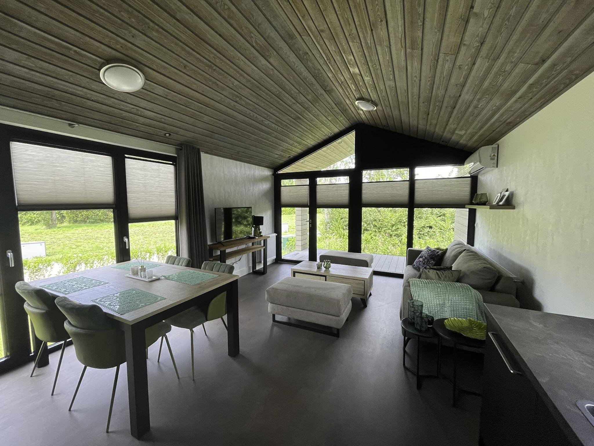 "De Parel", 3-room chalet 63 m2. Comfortable furnishings: living/dining room with dining table and flat screen. Exit to the terrace. 1 room with 2 beds. 1 room with 1 double bed. Open kitchen (dishwasher, Gas stove, kettle, electric coffee machine, combination microwave). Shower/WC. Heating, air-conditioning. Terrace. Terrace furniture. Facilities: Internet (WiFi, free). Parking at the house. Please note: smoke alarm. Bookings accepted for holiday purposes only.