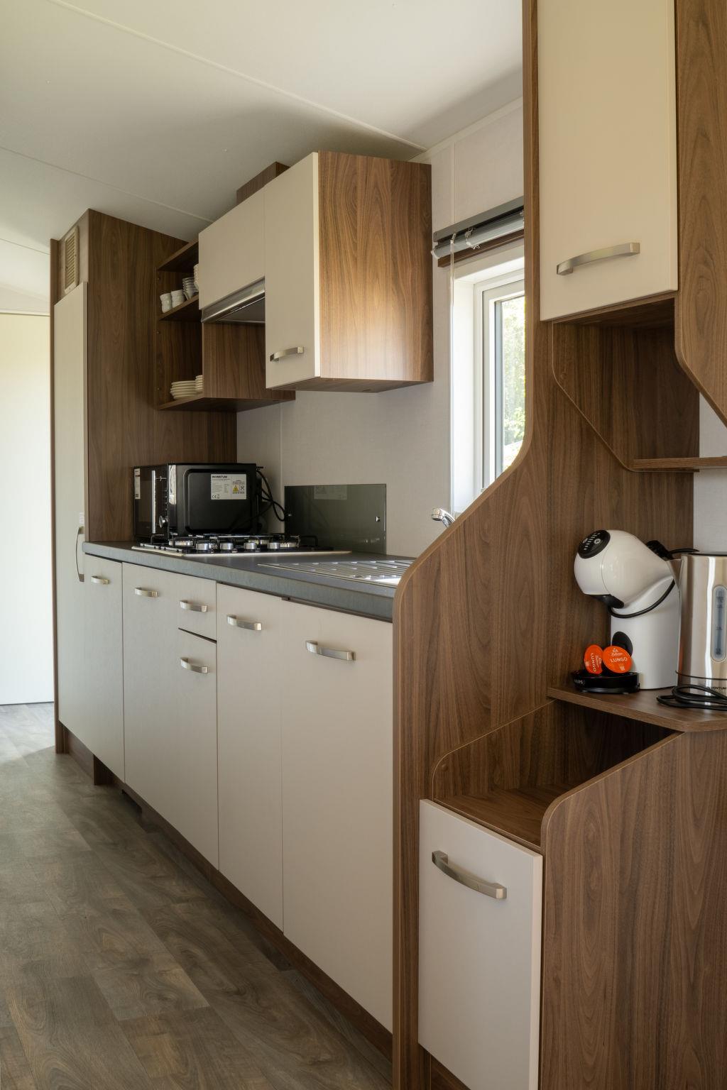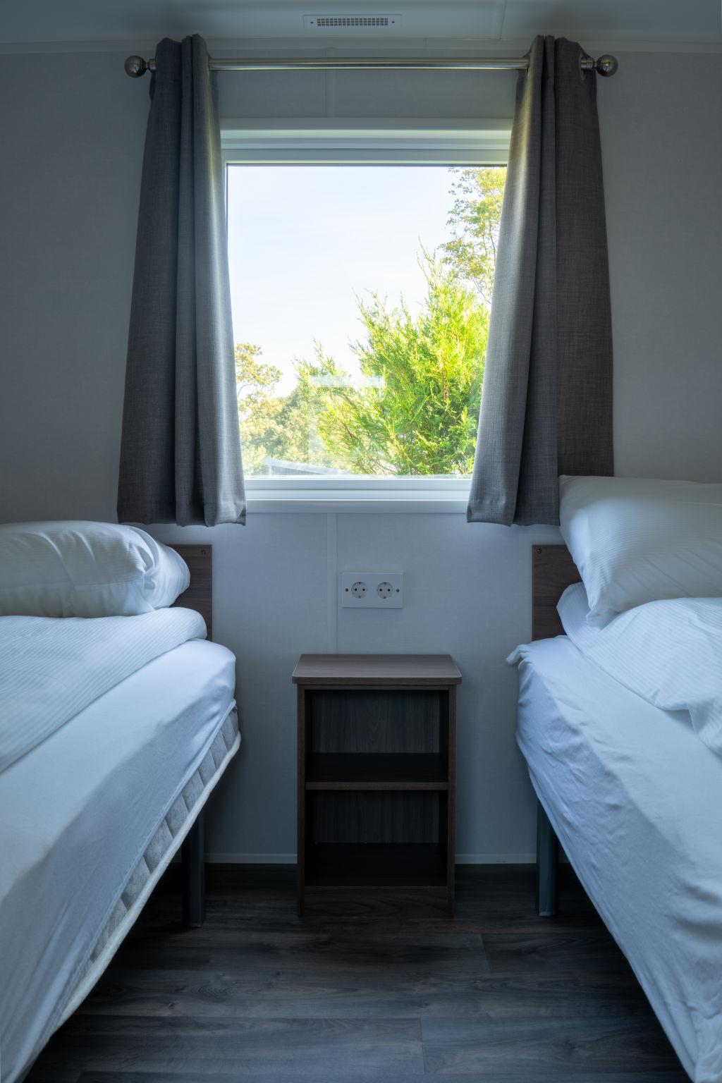 "Sunset", 4-room mobile home 60 m2. Comfortable furnishings: living/dining room with dining table and TV. Exit to the terrace. 1 room with 1 double bed. 2 rooms, each room with 2 beds. Small kitchen (4 hot plates, kettle, microwave, electric coffee machine). Shower/WC. Heating. Terrace. Terrace furniture. Facilities: Internet (WiFi, free). Parking at the house. Please note: smoke alarm. Bookings accepted for holiday purposes only.