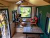 Stueetage: (Stue(sofahjørne), Køkken(spisebord, ovn), soveværelse(enkeltseng, enkeltseng), soveværelse(enkeltseng, enkeltseng), badeværelse(bruser, toilet)) patio