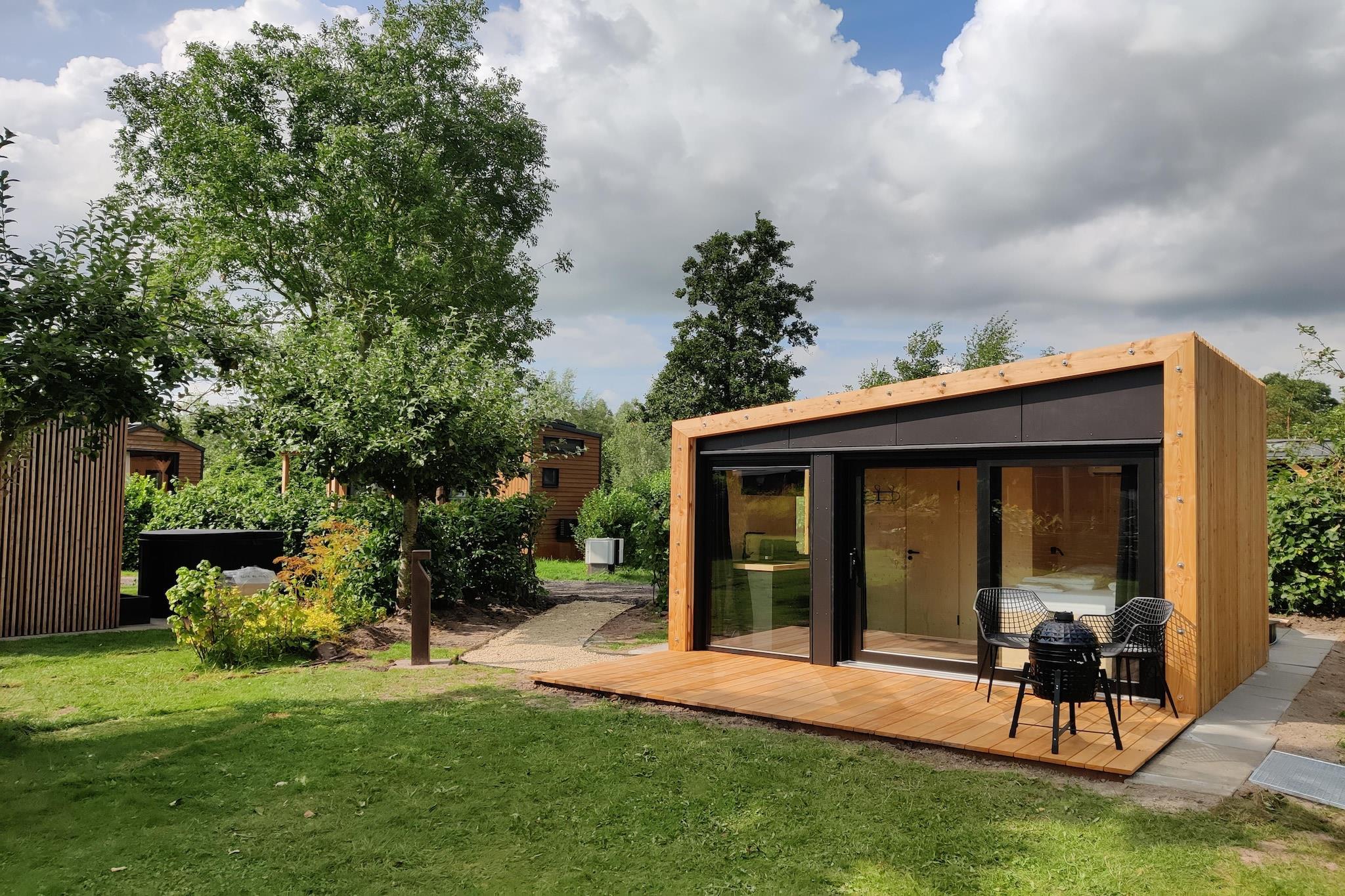 Denne minimalistiske hytte er et fritliggende og stilfuldt feriehus, der tilbyder et komfortabelt ophold for to voksne. Den er designet med skandinaviske påvirkninger og har en hyggelig dobbeltseng, privat badeværelse med bruser og toilet samt et kompakt, men funktionelt tekøkken. Store vinduer bringer naturligt lys ind og forbinder dig med de rolige omgivelser. Der er også et siddeområde både inde og ude, perfekt til afslapning. Denne hytte er ideel til par eller solorejsende, der søger enkelhed og fred. Kæledyr er ikke bekræftet som tilladt, og en baby kan medbringes efter anmodning. Feriehuset ligger i rolige og naturlige omgivelser, ideelt til afslapning og udendørsaktiviteter. Beliggende væk fra travle resorts eller parker, giver denne hytte gæsterne mulighed for at fordybe sig i naturen og udforske de naturskønne omgivelser i deres eget tempo. Lokale faciliteter såsom butikker og spisesteder kan nås i bil, hvilket tilbyder bekvemmelighed, samtidig med at privatliv og ro opretholdes. Beliggenheden opfordrer til lange gåture, stille refleksion og en pause fra byens tempo. Indenfor er hytten omhyggeligt møbleret med praktiske faciliteter til et kort eller længere ophold. Tekøkkenet inkluderer basisudstyr til at tilberede lette måltider, og det private badeværelse sikrer komfort og bekvemmelighed. Med moderne enkelhed og et naturfokuseret design tilbyder denne nye hytte et unikt og fredeligt tilflugtssted, der kan bookes fra juni 2024.