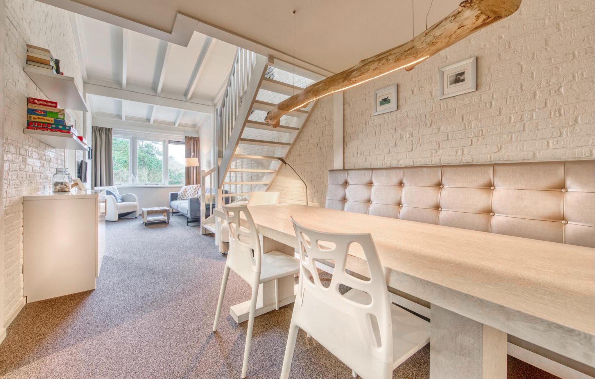 Velkommen til den bilfri ø Schiermonnikoog! Denne komfortable ferielejlighed har en fremragende beliggenhed i et malerisk klitlandskab, hvorfra I nemt kan nå havet til fods. Brug den stilfulde lejlighed som base for en afslappende pause med den ideelle kombination af stranddage og udforskning af området. Svøm først i den fælles indendørs pool om morgenen og slap af efter en lang cykeltur i en af ??saunaerne, og vælg mellem en fælles sauna indendørs eller de udendørs saunatønder. Om aftenen kan I slappe af i sofaen med en film eller nyde et glas vin på terrassen en varm sommeraften.