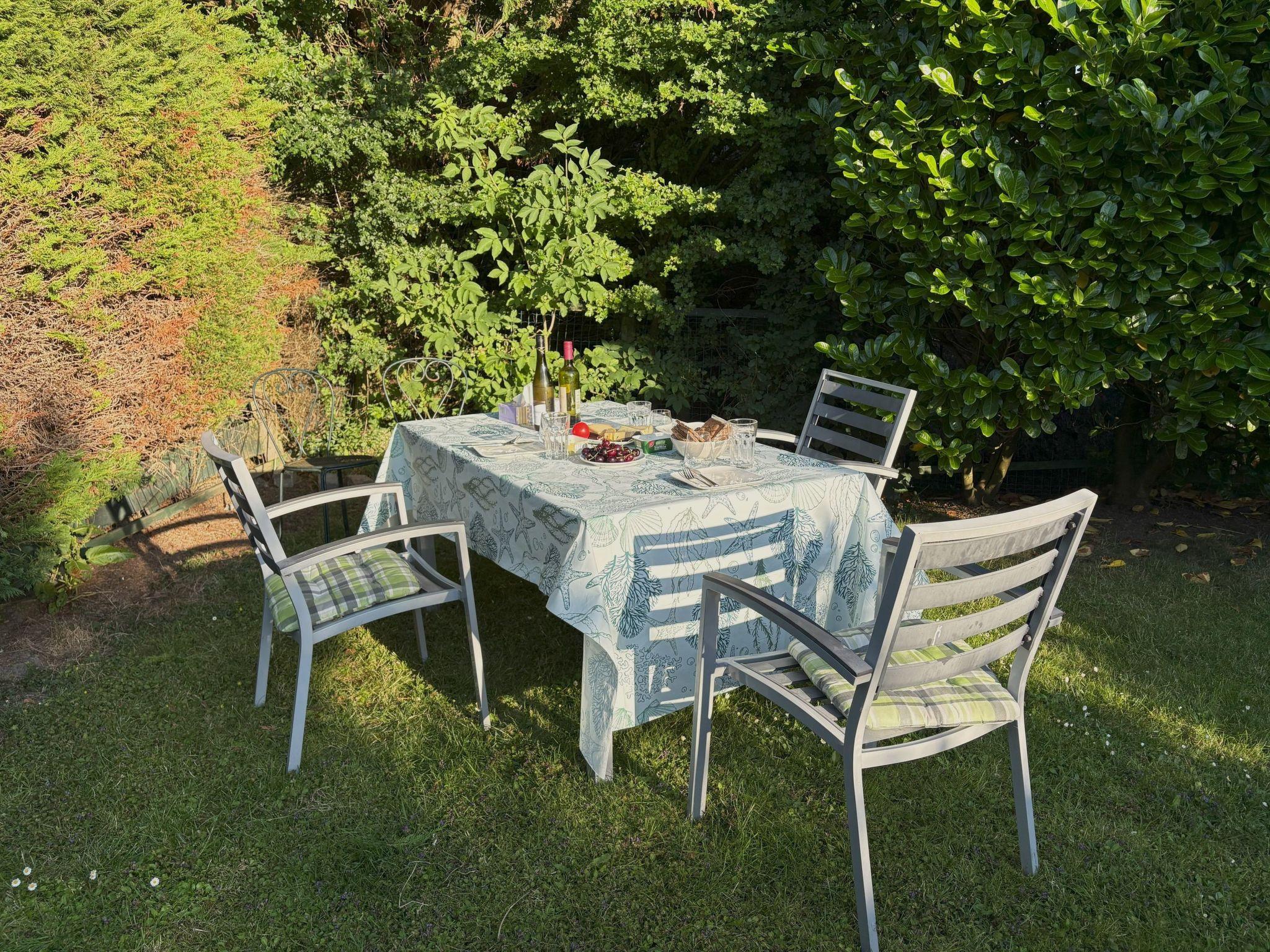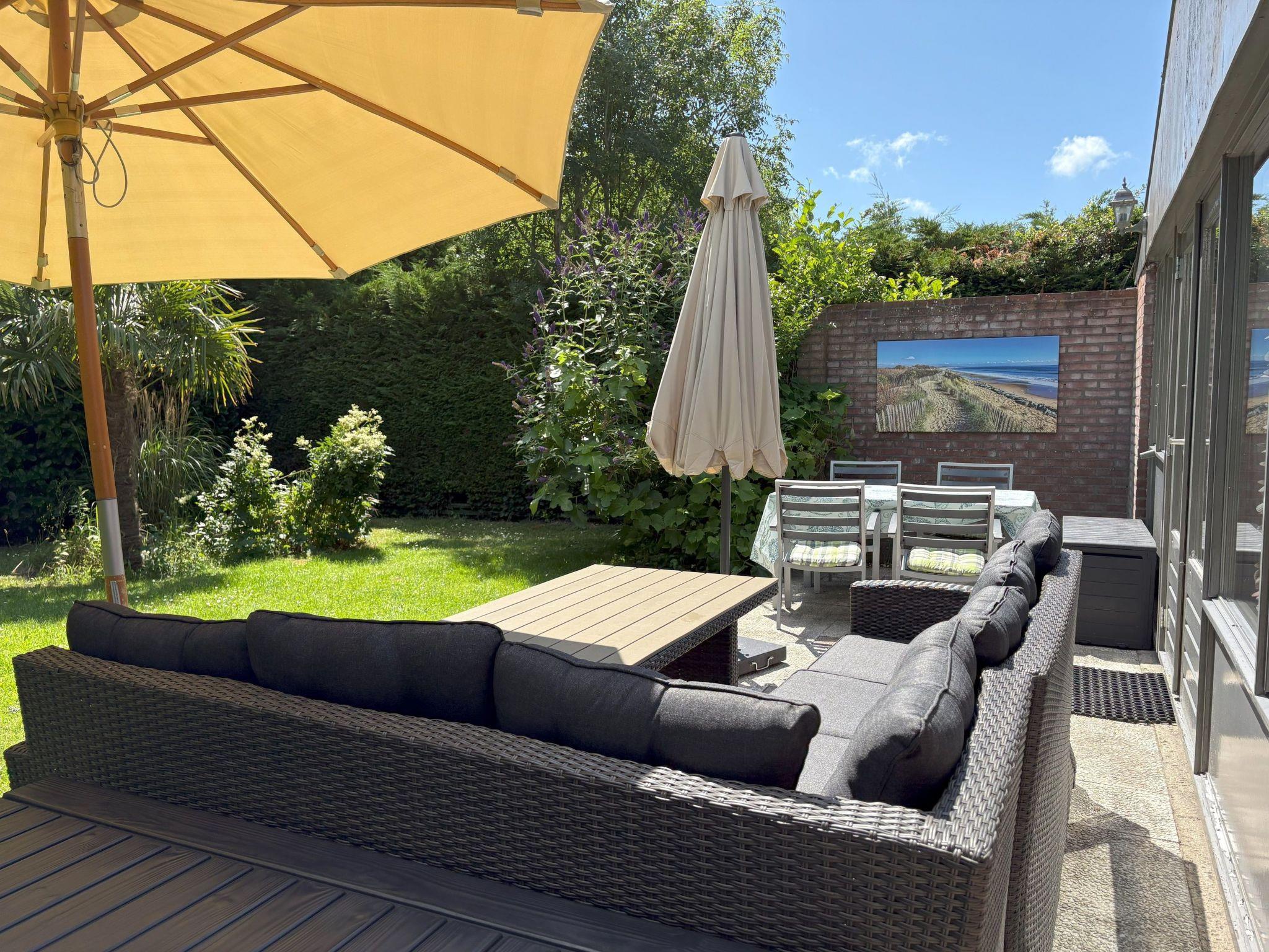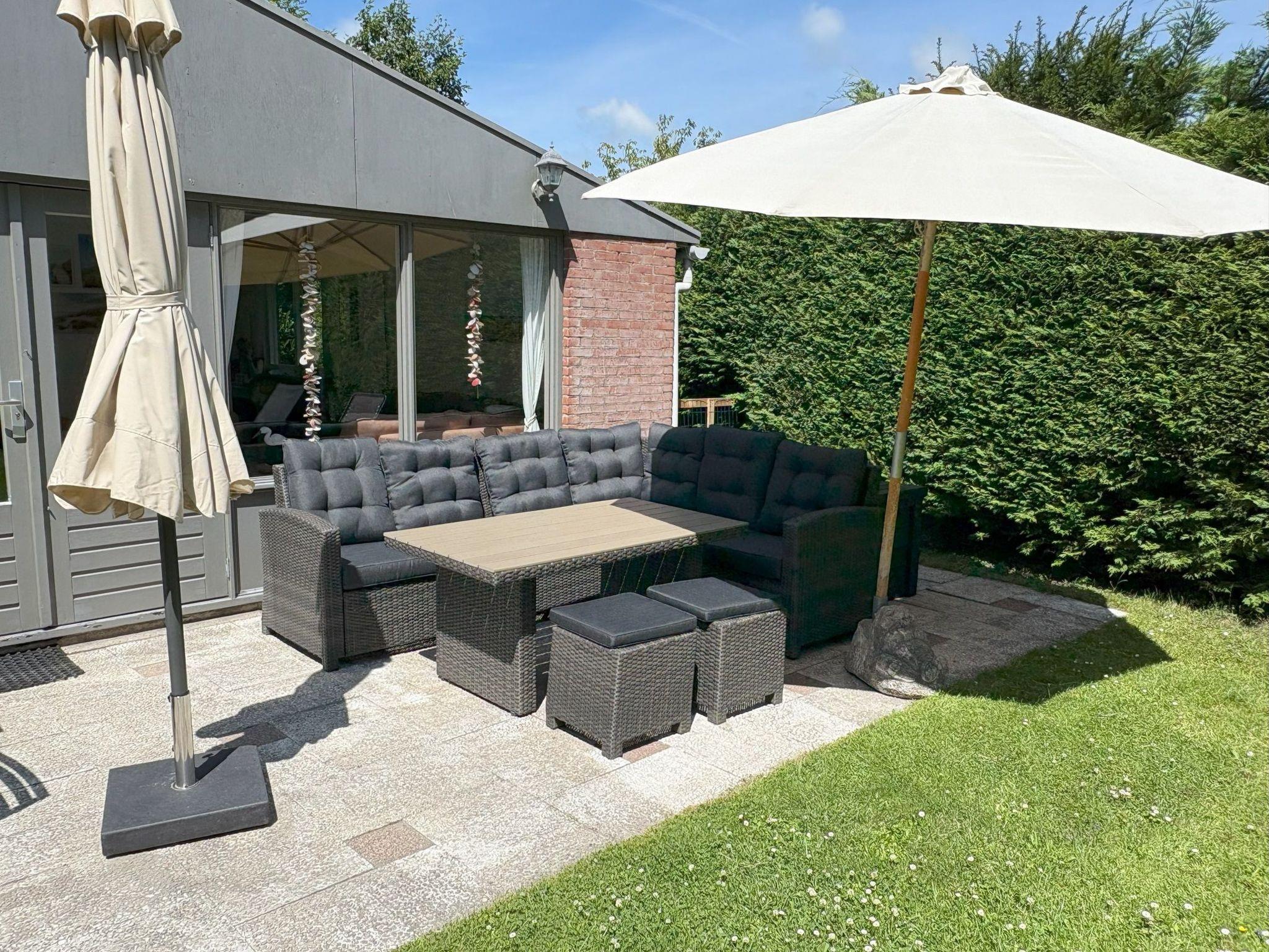 Enjoy the privacy of our fenced and secluded garden - ideal for playing children or dogs. The inviting terrace with dining lounge and patio table, equipped with two sun loungers and two parasols, offers the perfect setting for relaxing hours outdoors. The charcoal barbecue completes the picture for enjoyable barbecue evenings.