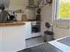 The bungalow has a bright living area with an open-plan kitchen. The furniture is modern and cosy.