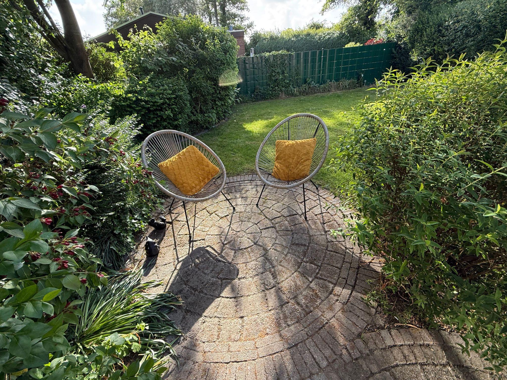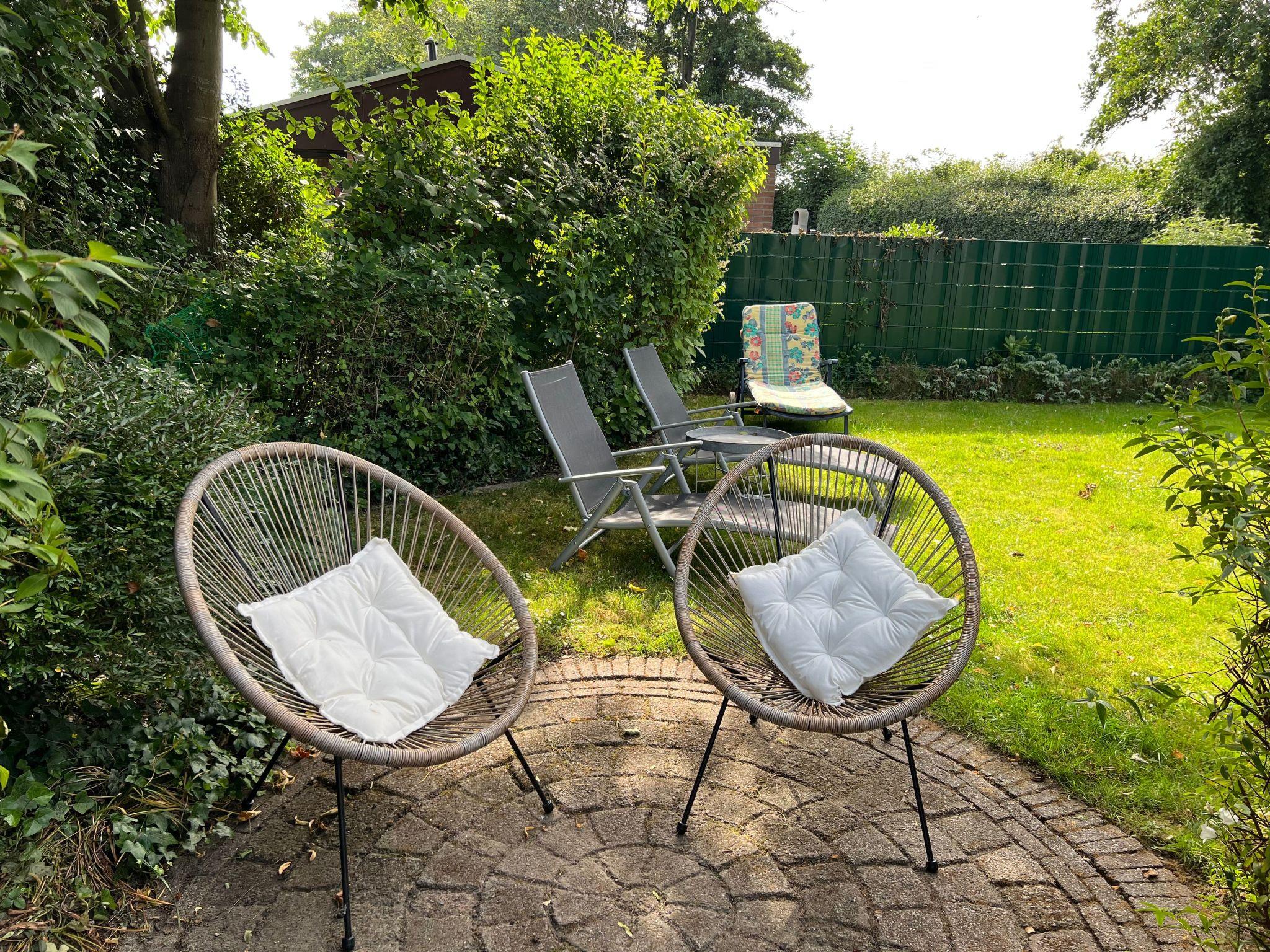 The outdoor area of our bungalow invites you to relax undisturbed with a fenced garden that cannot be seen from outside. Here you can enjoy the North Sea air on the terrace, which is furnished with a patio table and wooden benches. Three sun loungers, four garden chairs and two parasols offer additional comfort, and a charcoal barbecue is available for cosy barbecue evenings. Children and dogs can roam freely and safely in the garden, making our bungalow the ideal choice for pet owners.