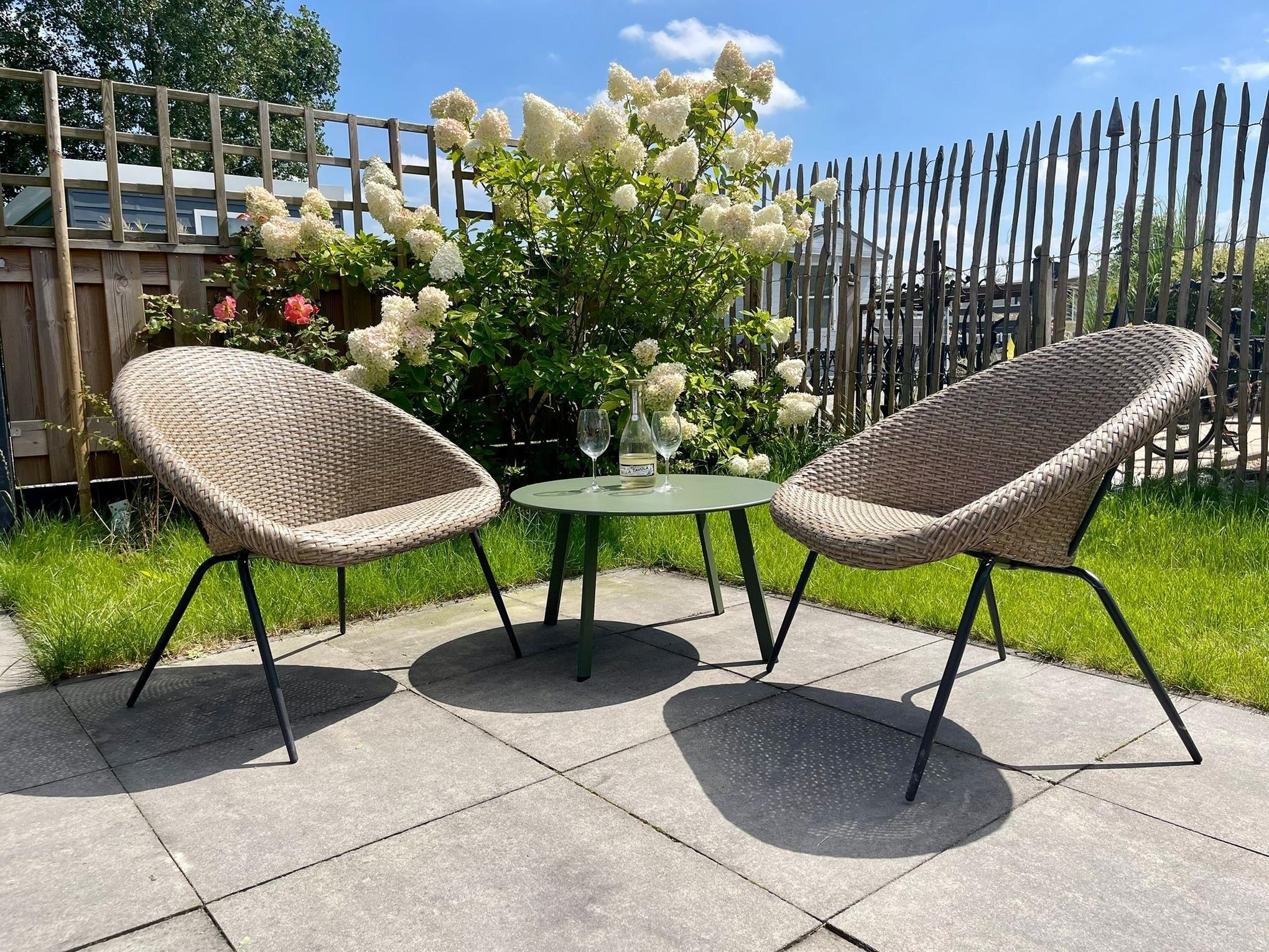 Draußen erwartet die Gäste eine vollständig eingezäunte Terrasse mit Gartenmöbeln und Sonnenschirm – perfekt für ein Frühstück in der Morgensonne oder ein Glas Wein am Abend.