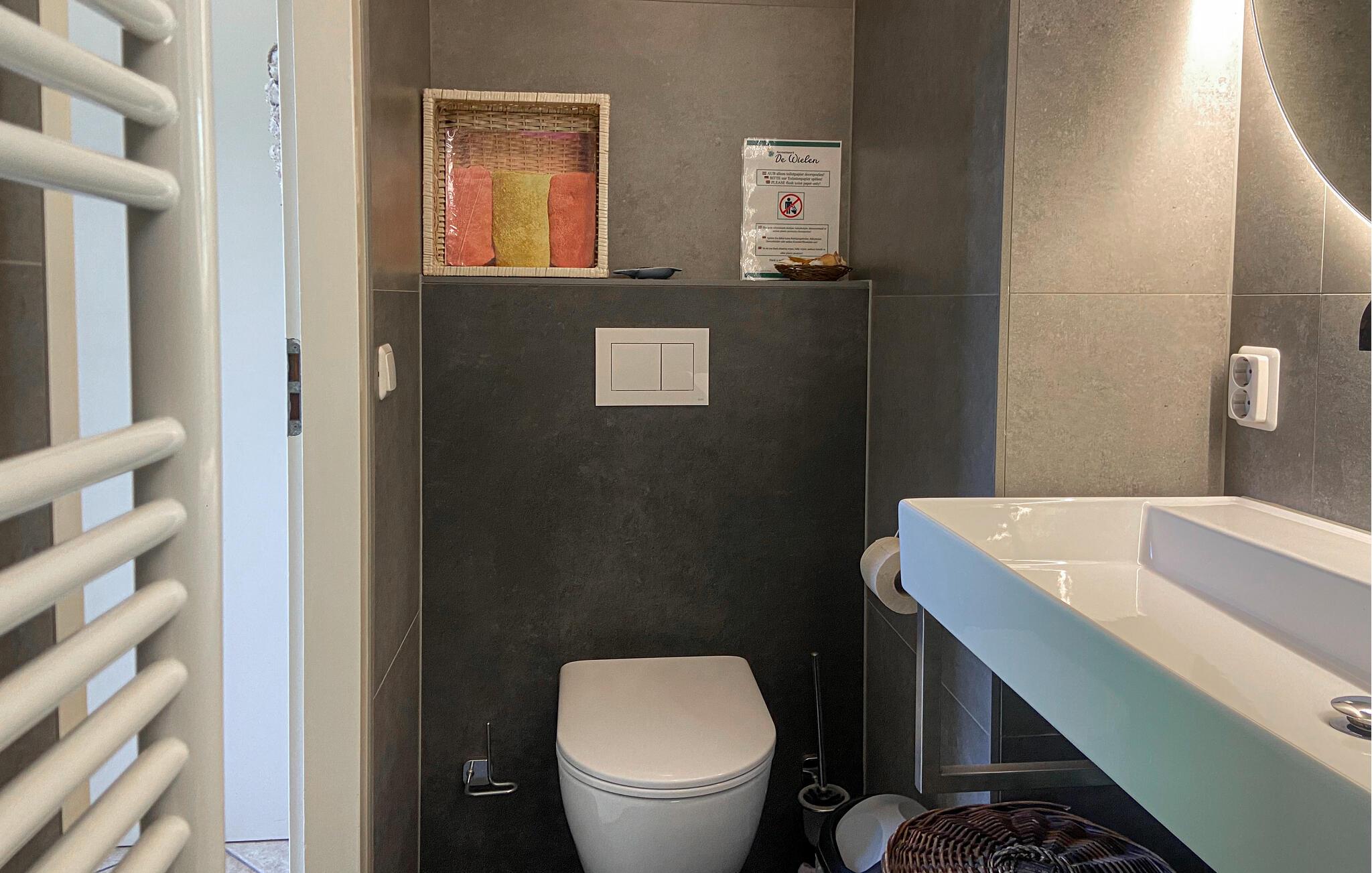 Dette komfortable feriehus ligger i den smukke Bungalow Park de Wielen på Sint Maarten. Dette feriested er opkaldt efter de to søer, der blev dannet i oldtiden, hvor det er muligt at fiske, og hvor der er etableret en smuk vandresti. Sint Maarten ligger tæt på den hyggelige by Schagen, hvor I kan nyde udendørsservering på restauranter, og er også inden for rækkevidde af Amsterdam (60 km). Feriehuset ligger 5 km fra stranden. Bungalowen har en smuk have med klitter og græsplæne. Gennem skydedørene kommer man ind på den solrige sydvendte terrasse. Feriehuset har egen parkeringsplads til 2 biler. I stueetagen er der en rummelig stue med en hyggelig pejs og et separat køkken. Det fuldt udstyrede køkken med opvaskemaskine og lille ovn er ideelt til at tilberede små måltider. Badeværelset har toilet, badekar og bruser. Der er vaskemaskine og tørretumbler i opbevaringsrummet.