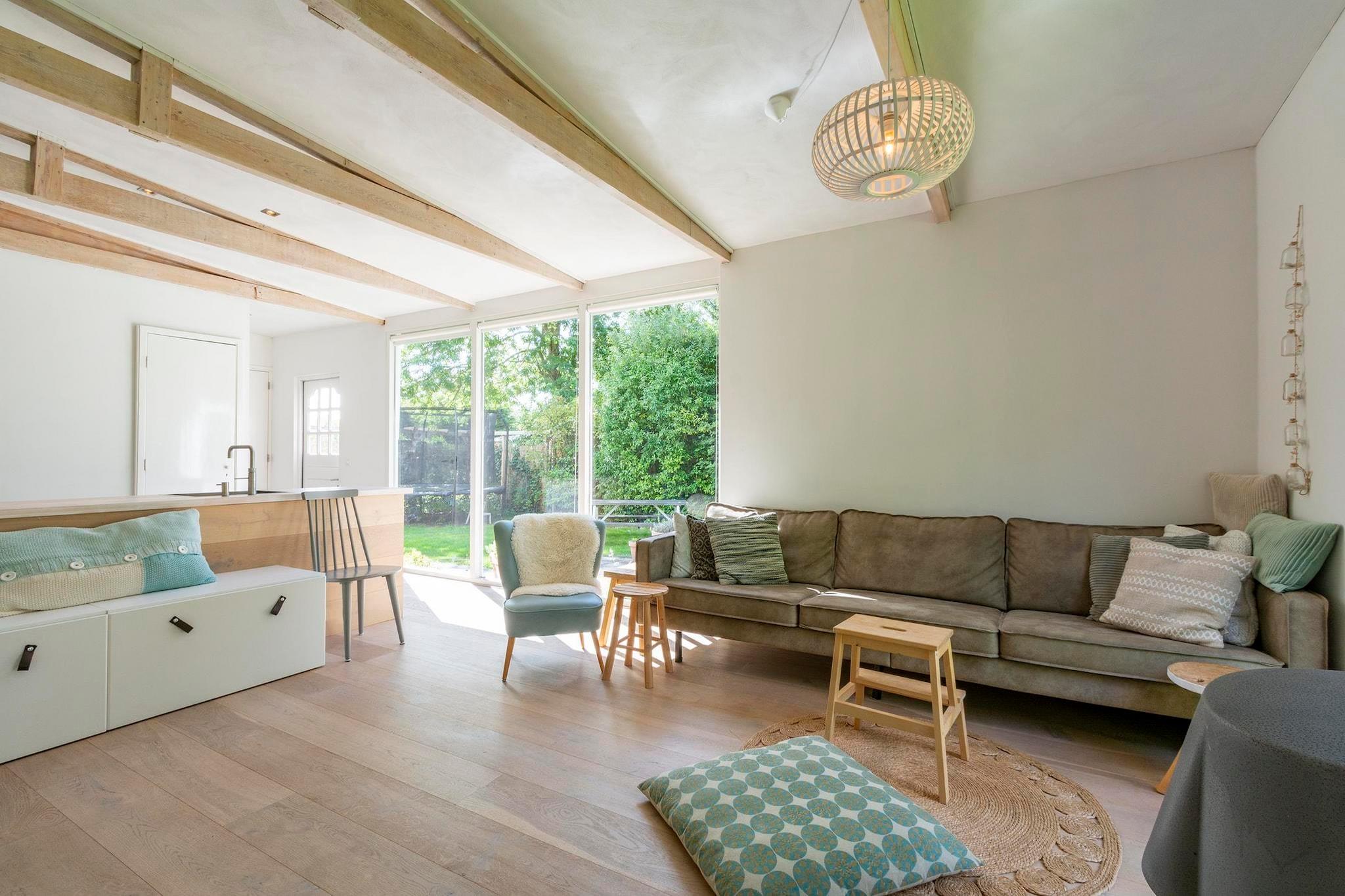 Charmerende familieflugt Denne stilfulde og indbydende bungalow tilbyder den perfekte blanding af komfort og charme til familier og grupper. Lyst og moderne, boligområdet er centreret omkring en hyggelig brændeovn - ideel til at slappe af efter en dag udendørs. Et fuldt udstyret køkken med rummelig spiseplads inviterer til hjemmelavede måltider, mens den solrige have byder på flere siddepladser, en trampolin og endda et træhus med en gynge, hvilket gør det til et paradis for både børn og voksne. Med høj stol og plads til kæledyr er alle i familien velkomne. Natur- og kystlinjeeventyr Huset ligger i fredelige Sint Maartensvlotbrug, kun få minutter fra klitterne og brede strande i Nordholland. Nyd naturskønne cykelture eller gåture gennem det nærliggende Zwanenwater naturreservat, kendt for sine vilde blomster, fugle og fredfyldte søer. Den vidtstrakte kystlinje er perfekt til lange, kæledyrsvenlige strandture, mens familier vil nyde at besøge den nærliggende Land van Fluwel eventyrpark og den charmerende by Schagen til shopping og kulturelle begivenheder. Smag af regionen Når det kommer til spisning, vil du blive forkælet med valg. Tag til Strandpaviljoen Noord for strandmåltider med udsigt, eller prøv lokale fisk og skaldyr på De Goudvis restaurant. I det nærliggende Callantsoog byder hyggelige bistroer og caféer på alt fra hollandske pandekager til middelhavsretter. Uanset om du spiser ude eller laver mad i området, vil regionens friske råvarer og kystnære flair helt sikkert behage.