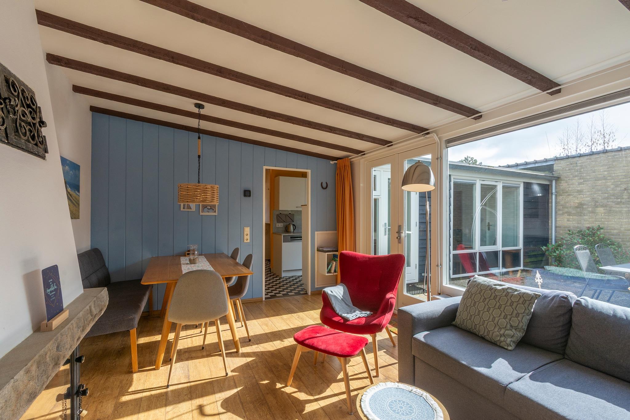 Hyggelig komfort ved kysten Gemt væk i et fredeligt hjørne af Park Duinland, tilbyder denne charmerende bungalow det perfekte tilflugtssted for små familier eller par. Lyst og indbydende, opholdsområdet åbner direkte ud til en solbeskinnet terrasse med en fuldt lukket have - ideel til udendørs måltider, slappe af i privatlivet eller lade børn og kæledyr lege frit. Med tankevækkende detaljer som en høj stol og en hyggelig indendørs spiseplads er rummet skræddersyet til komfort og lethed. Udforsk naturens bedste Fra din hoveddør kan du begive dig direkte ind i det betagende klitlandskab i Sint Maartenszee. Bare en kort gåtur eller cykeltur gennem reservatet bringer dig til brede, kæledyrsvenlige strande - perfekte til at lade din hund løbe frit eller se solnedgangen. For naturelskere byder en tur til det nærliggende Zwanenwater-naturreservat eller den charmerende kystlandsby Callantsoog endeløs med naturskønhed og udendørsaktiviteter. Smag af Nordsøkysten Efter en dag med udforskning kan du nyde friske lokale smagsoplevelser på nærliggende spisesteder. Prøv Strandpaviljoen Noord for en bid ved havet med udsigt, eller tag til Eeterij De Bokkesprong, en elsket lokal perle beliggende i en gammel bondegård. Uanset om du nyder kaffe på terrassen eller forkæler dig med en fisk- og skaldyrsmiddag i nærheden, placerer Duinland 135 dig i hjertet af Nordhollands afslappende rytme.