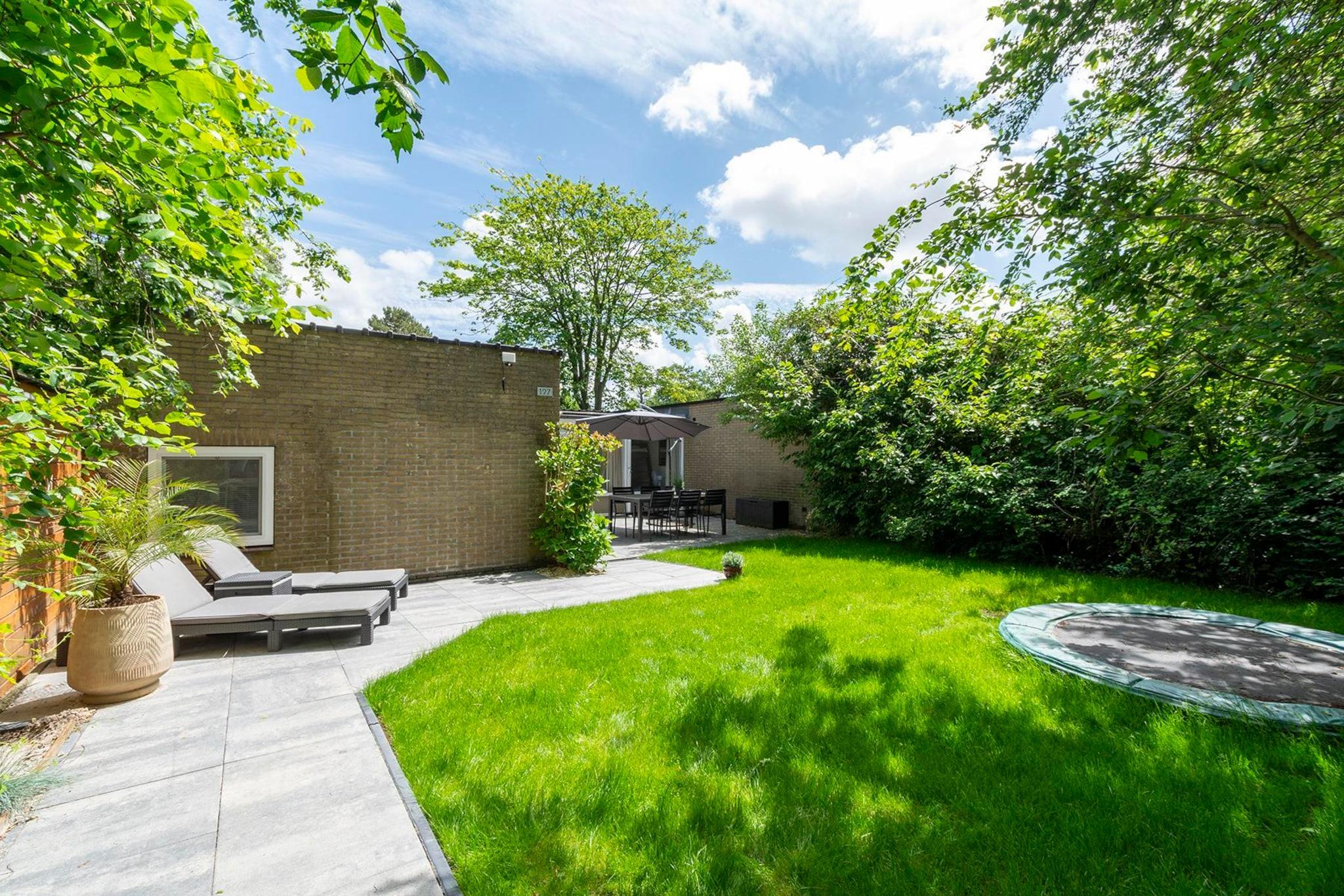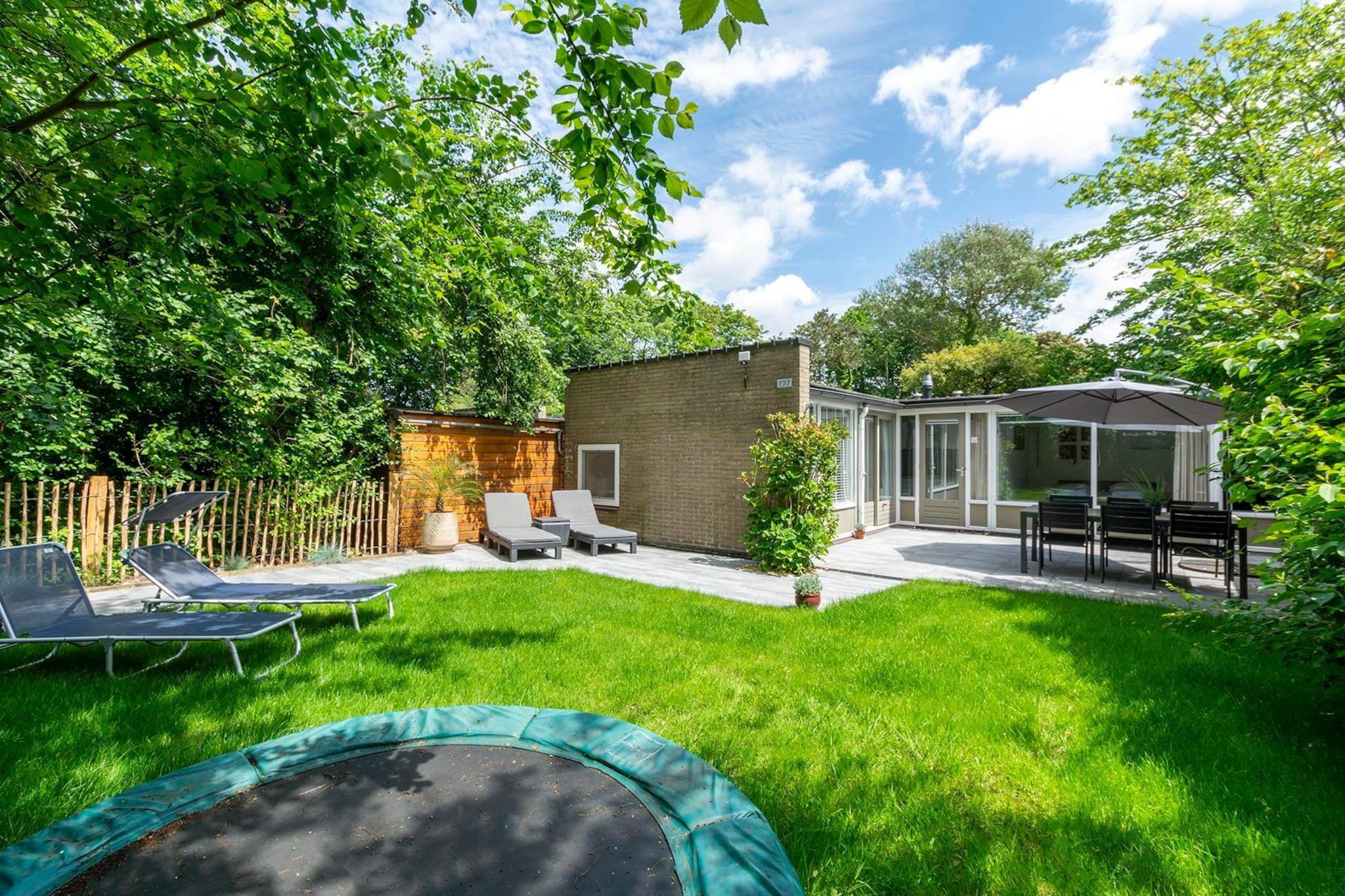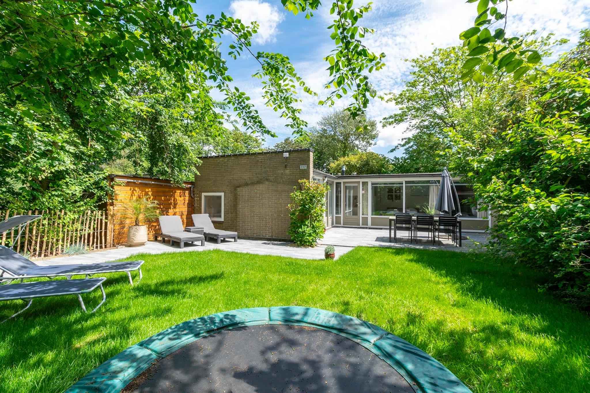 Moderne feriebungalow med masser af lys og en dejlig, grøn have i Sint Maartenszee Feriebungalowen Duinland 197 til 6 personer er et dejligt feriehus til en ferie tæt på havet og stranden i Sint Maartenszee. I den grønne delvist indhegnede have med overdækket terrasse og masser af privatliv har du al plads til at nyde med 6 personer. Den rummelige, lyse stue har en hyggelig opholds- og spiseplads. Køkkenet er fuldt udstyret. Der er tre soveværelser. Det største, lyse soveværelse har en dobbeltseng. Gennem dette soveværelse kommer du ind gennem en forbindelsesdør ind i et soveværelse med køjeseng. Det tredje soveværelse har 2 enkeltsenge. Det renoverede badeværelse har flot bruseniche, håndvask og toilet. På den overdækkede terrasse kan I nyde den første sol tidligt, mens børnene kan hygge sig på trampolinen bagerst i haven.