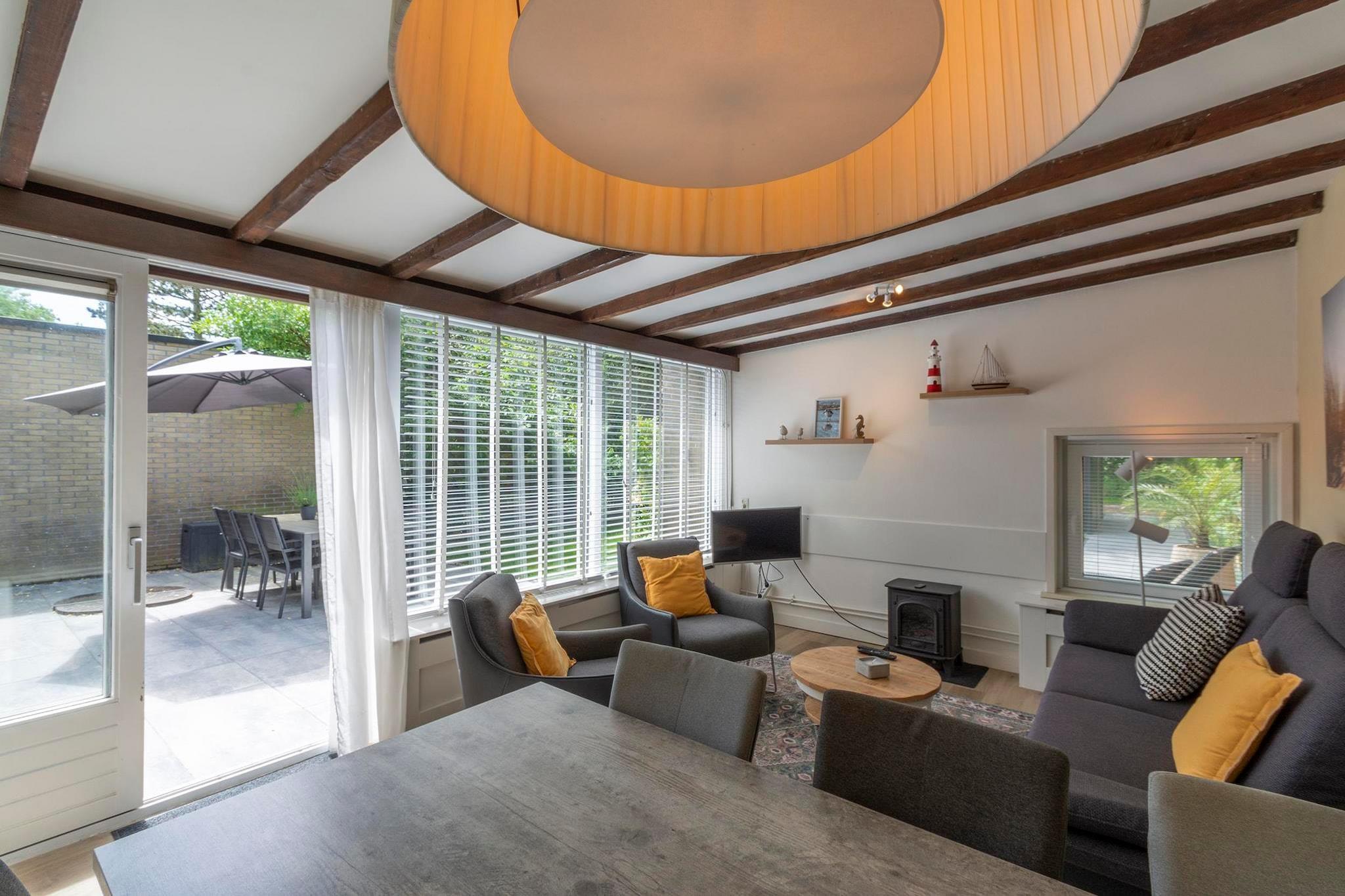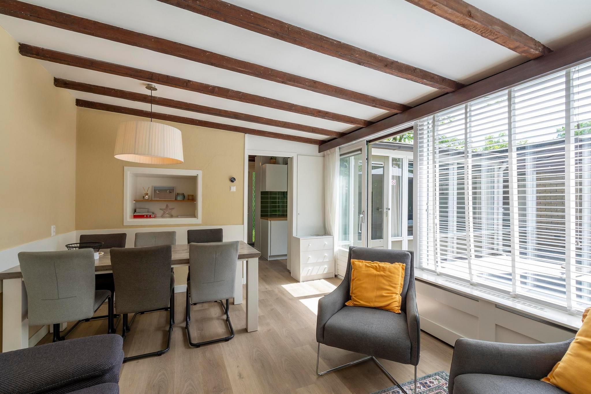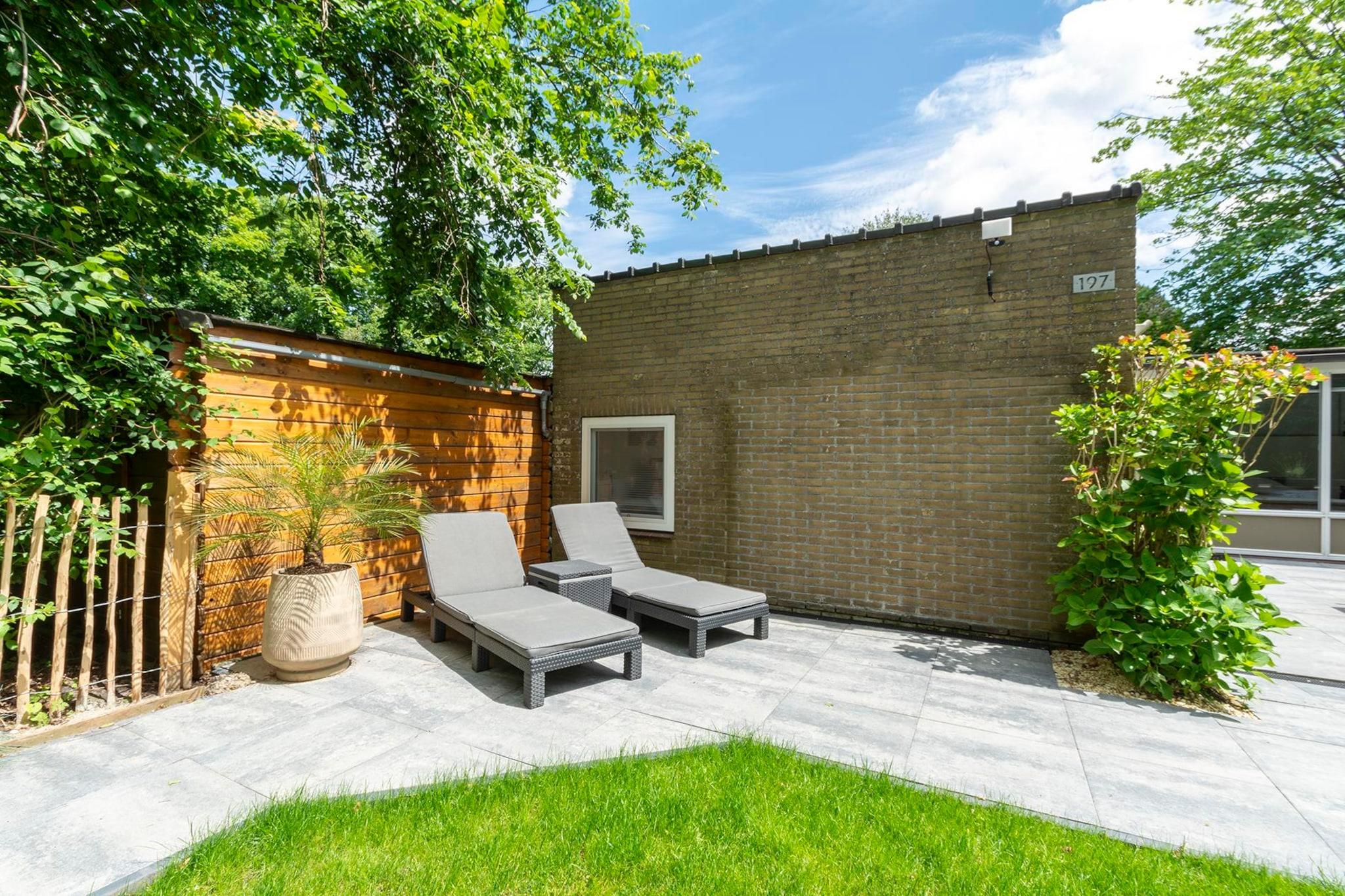 Moderne feriebungalow med masser af lys og en dejlig, grøn have i Sint Maartenszee Feriebungalowen Duinland 197 til 6 personer er et dejligt feriehus til en ferie tæt på havet og stranden i Sint Maartenszee. I den grønne delvist indhegnede have med overdækket terrasse og masser af privatliv har du al plads til at nyde med 6 personer. Den rummelige, lyse stue har en hyggelig opholds- og spiseplads. Køkkenet er fuldt udstyret. Der er tre soveværelser. Det største, lyse soveværelse har en dobbeltseng. Gennem dette soveværelse kommer du ind gennem en forbindelsesdør ind i et soveværelse med køjeseng. Det tredje soveværelse har 2 enkeltsenge. Det renoverede badeværelse har flot bruseniche, håndvask og toilet. På den overdækkede terrasse kan I nyde den første sol tidligt, mens børnene kan hygge sig på trampolinen bagerst i haven.