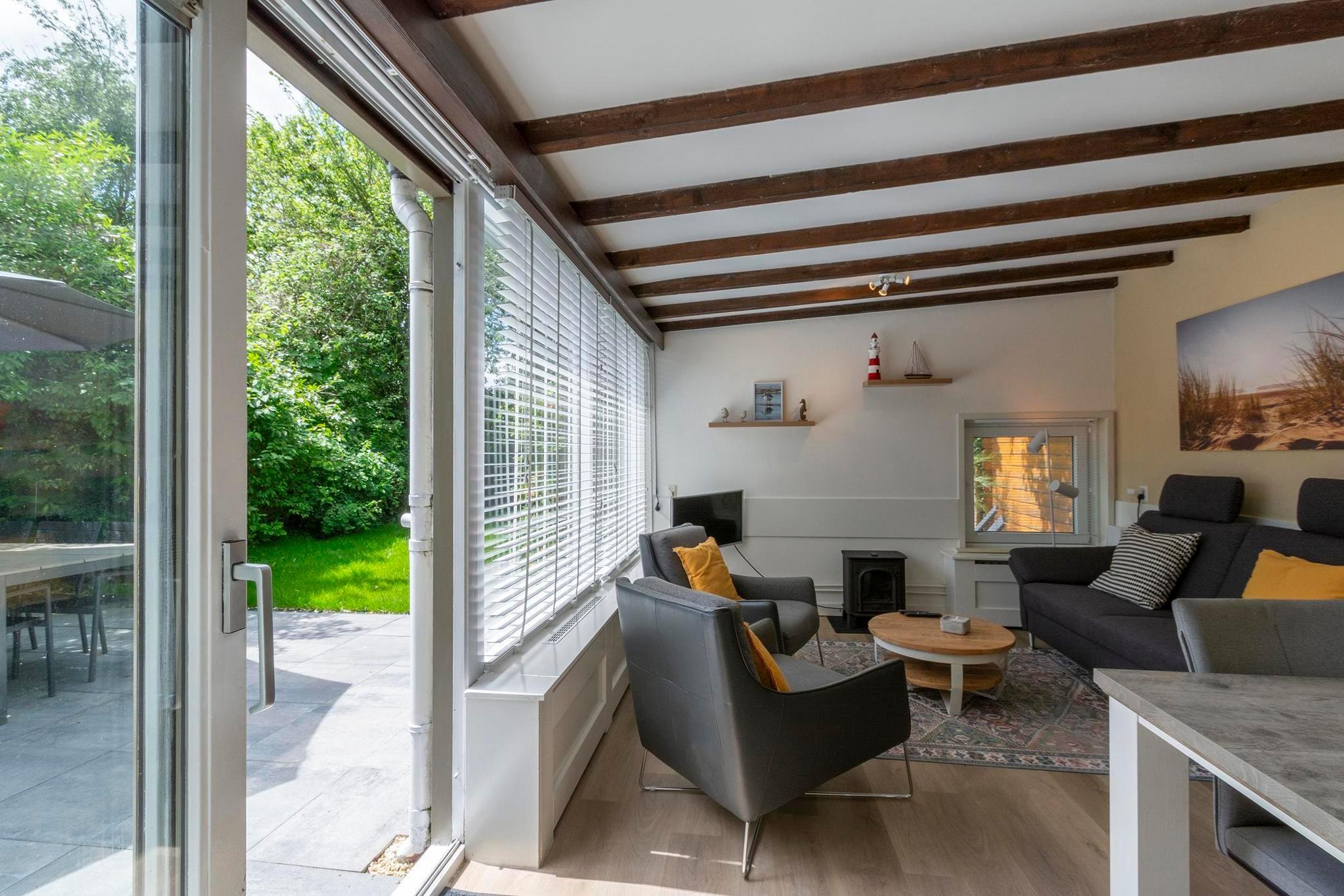 Stueetage: (Stue(Fjernsyn(fladskærm, Smart-TV), sofahjørne), Køkken(spisebord, kogeplade(Komfur med fire kogeplader, gas), elkedel, brødrister, emhætte, kaffemaskine(kaffetragt), ovn, combi-mikroovn, opvaskemaskine , køle-fryseskab, (), ()), soveværelse(dobbeltseng), soveværelse(køjeseng), soveværelse(enkeltseng, enkeltseng), badeværelse(bruser, håndvask, toilet)) Internetadgang, varme(central), terrasse, have(indhegnet), cykelopbevaring, havemøbler, solstole, parkering, trampolin, liggestole, Parasol, barnestol, tørreskab