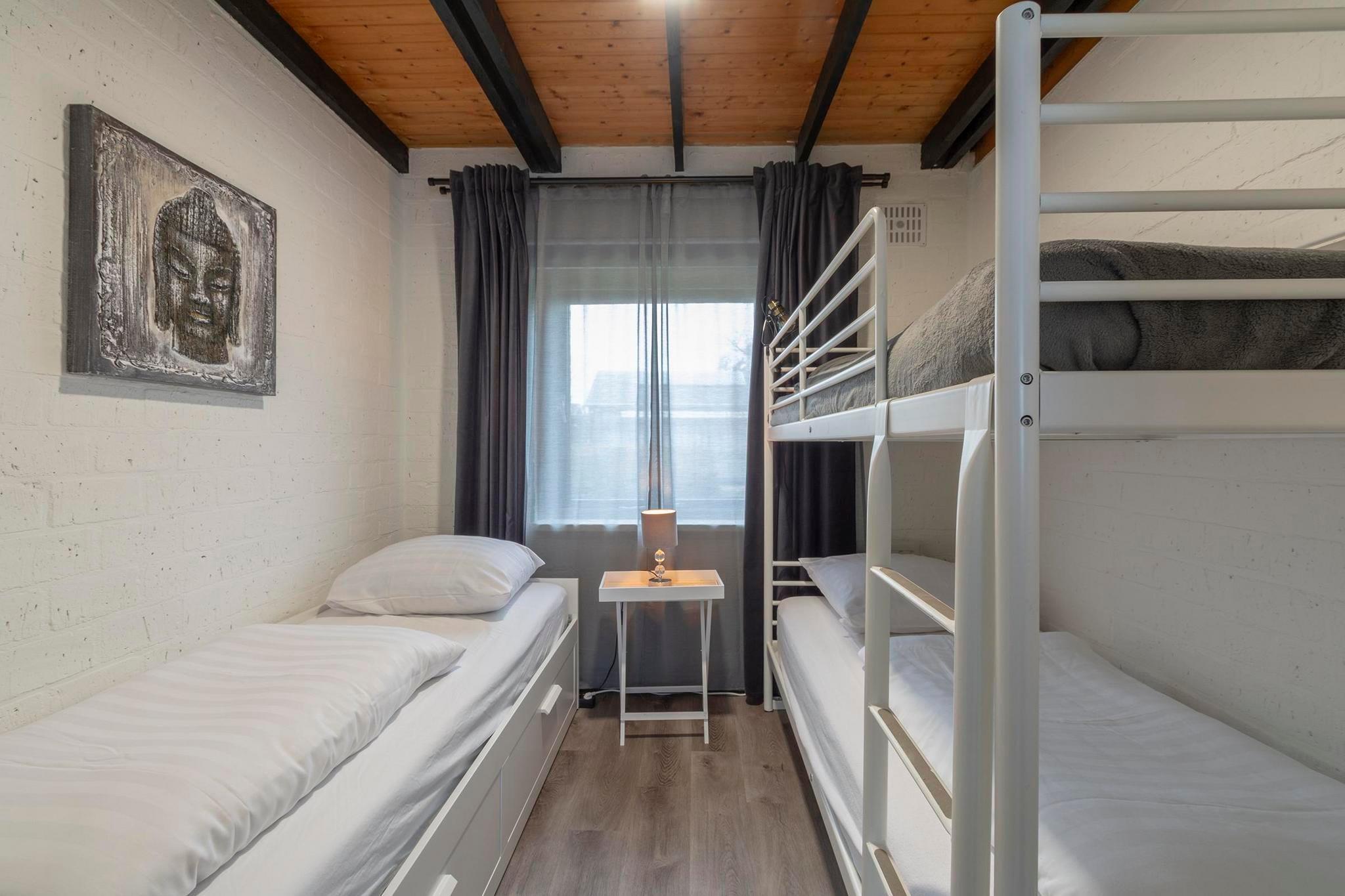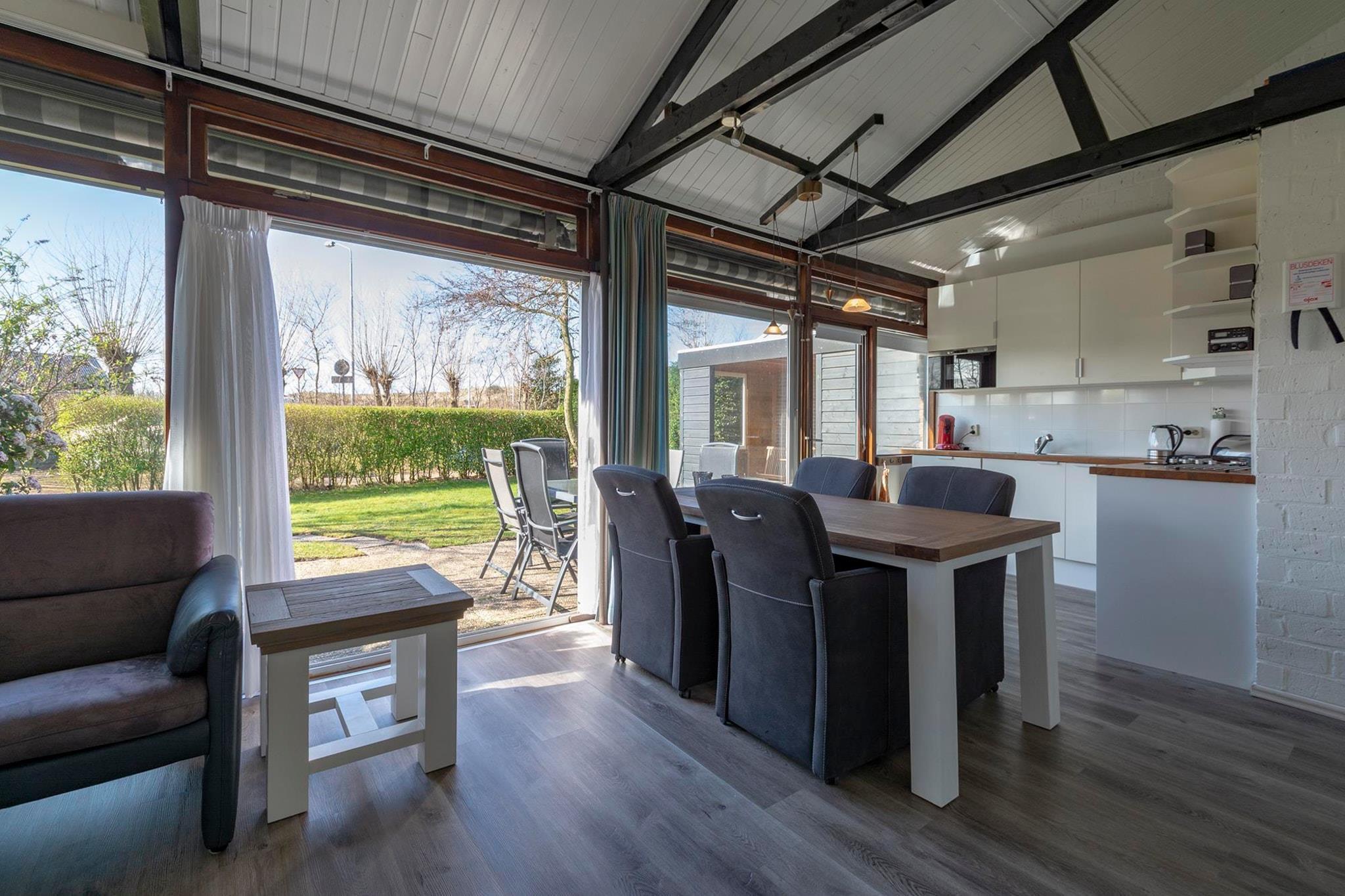 Velkommen til Boerenslag 2, en smukt renoveret feriebungalow til op til 5 gæster, beliggende lige overfor strandindgangen til Sint Maartenszee. Dette børnevenlige hjem er perfekt til familier, der søger en afslappende kystferie. En naturskøn vandre- og cykelsti fører jer gennem klitterne til den brede sandstrand, hvilket gør det nemt at nyde havet og solen. Indenfor åbner den rummelige stue sig ud mod haven gennem store skydedøre, hvilket skaber en problemfri inde-udendørs oplevelse. Det åbne køkken er fuldt udstyret med gaskomfur, varmluftovn, mikrobølgeovn, opvaskemaskine og både filter- og Senseo-kaffemaskine. Soveværelset har en komfortabel dobbeltseng, mens det andet soveværelse har plads til tre personer med en køjeseng og en enkeltseng - ideelt til børn. Badeværelset er lyst og moderne med bruser, toilet og håndvask. Udenfor er den sydvendte terrasse perfekt til at nyde solen, og den tilstødende græsplæne tilbyder et sikkert sted for børn at lege. Med faciliteter som vaskemaskine, havemøbler, liggestole og en trækvogn er alt sat til en ubekymret ferie. Kæledyr er ikke tilladt, hvilket sikrer et rent og fredeligt miljø. Boerenslag 2 er din indgang til en mindeværdig ferie ved havet!