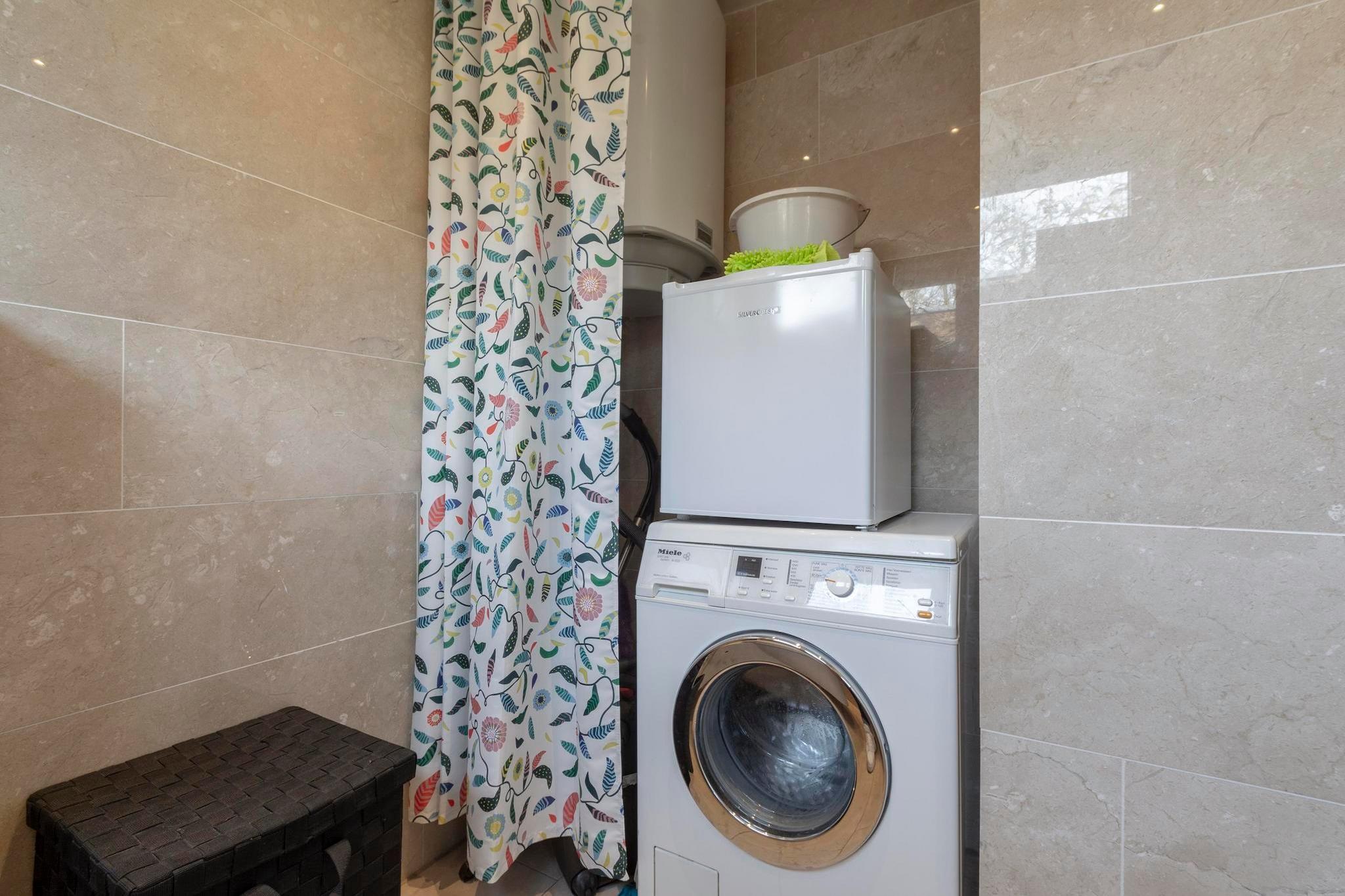 Stueetage: (Stue(Fjernsyn(fladskærm), sofahjørne), åbent køkken(spisebord, kogeplade(Komfur med fire kogeplader, gas), elkedel, brødrister, emhætte, kaffemaskine(kopper, espresso, kaffetragt), ovn, mikrobølgeovn, opvaskemaskine , køleskab, (), ()), soveværelse(dobbeltseng), badeværelse(bruser, håndvask, toilet), toilet(toilet), Internetadgang) kakkelovn(træ), vaskemaskine, varme(central), terrasse, have, havemøbler, Parasol