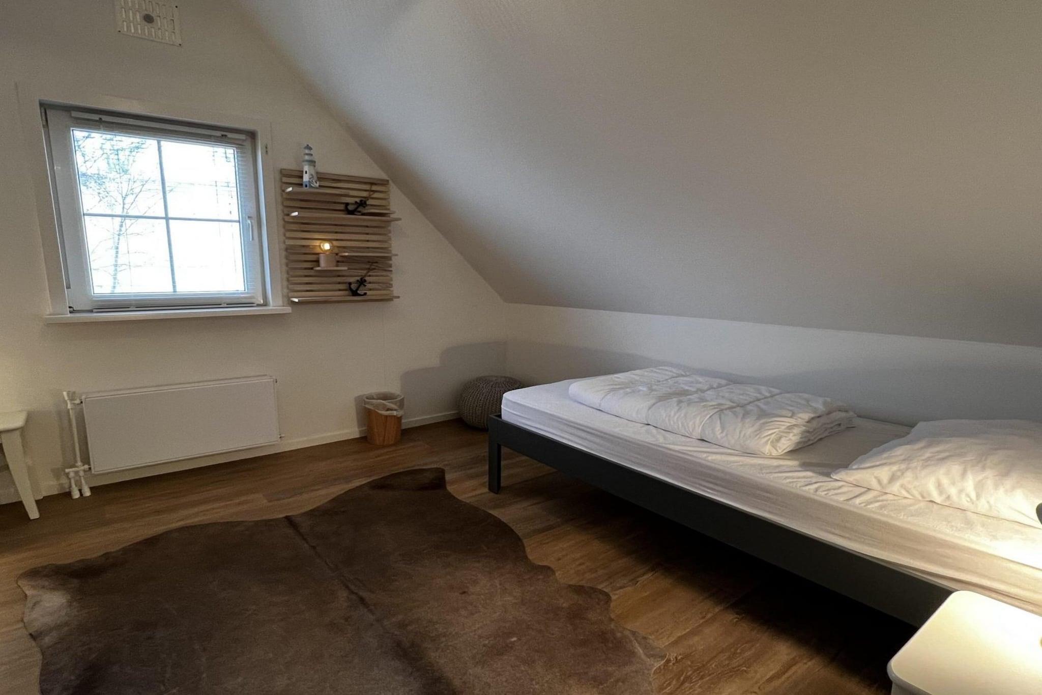 Slap af i dette charmerende feriehus beliggende i den fredfyldte Villapark Anzelhoef, Sint Maartenszee. Ejendommen blev renoveret i 2023 og har plads til op til 5 gæster og tilbyder en smagfuldt møbleret stue med en komfortabel hjørnesofa, lænestole og et Smart TV med hollandske og tyske kanaler. Spiseområdet sæder seks, med en høj stol forudsat. Det moderne åbne køkken har opvaskemaskine, Nespresso-kaffemaskine, induktionskomfur og kombineret mikroovn, suppleret med et bryggers med vaskemaskine og tørretumbler. Beliggende tæt på strand og skov, er boligen perfekt til en cykel- eller vandreferie. En 10-minutters cykeltur fører til stranden, mens den omkringliggende skov ligger kun en kort gåtur derfra. Udforsk de smukke klitter, pulserende løgmarker om foråret og lokale markeder for en afslappende ferie. Området er ideelt for udendørsentusiaster, med stier og naturskønne landskaber, der byder på masser af eventyr og fritid. Ejendommen indeholder to moderne badeværelser, et på hver etage - et med bruser, toilet og håndvask, og det andet med badekar, toilet og håndvask. Den solrige have har en anlagt terrasse med møbler og en elektrisk grill til udendørs spisning. Én bil kan parkere på ejendommen, med yderligere parkering tilgængelig på den almindelige parkeringsplads. Der er gratis WiFi, og gæsterne bliver mindet om at medbringe eller leje linned. Bemærk venligst, at kæledyr ikke er tilladt, og opladning af elbiler er forbudt. Bemærk: Sengetøjet er valgfrit og tilgængeligt for EURO 13 p.p./Ophold.