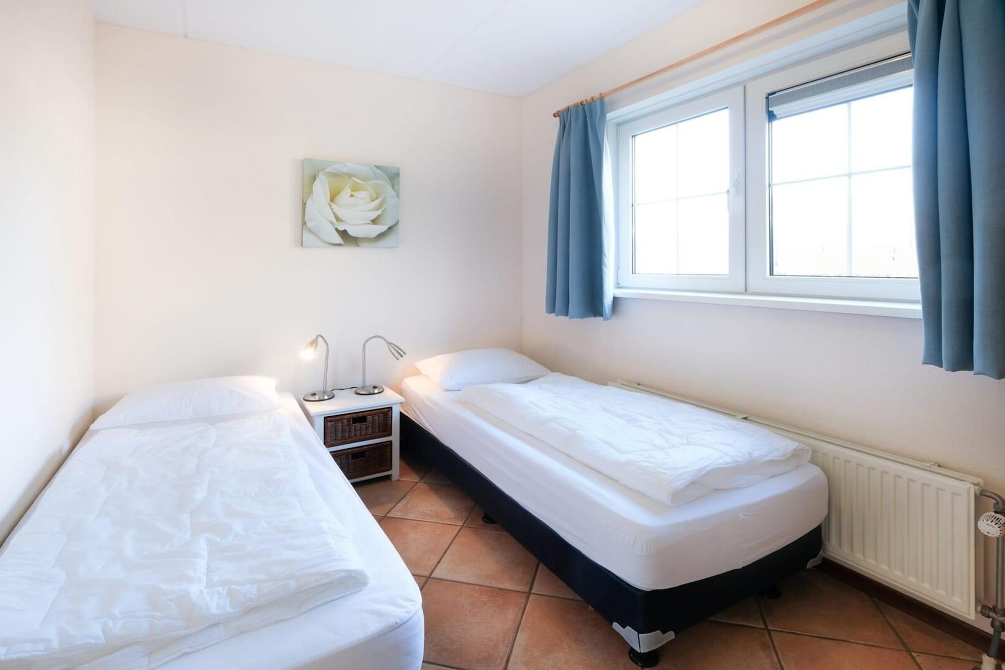 Slap af og slap af på den charmerende Villapark Anzelhoef i Sint Maartenszee, en lille park kun 10 minutter på cykel fra stranden og kun en kort gåtur til skoven. Dette fredelige tilflugtssted er ideelt til en cykel- eller vandreferie nær havet eller et weekendophold. Stuen er smagfuldt indrettet med to sofaer, en lænestol og et rummeligt sofabord. Nyd kabel-tv med hollandske og tyske kanaler. Spisestuen har et stort bord med seks stole, og en høj stol er tilgængelig for de små. Det fuldt udstyrede åbne køkken inkluderer en opvaskemaskine, filterkaffemaskine, elkedel, brødrister, 4-brænder gaskomfur og kombineret mikrobølgeovn. Der er også vaskemaskine og tørretumbler i bryggerset. Ejendommen byder på tre hyggelige soveværelser. I stueetagen er der et soveværelse med to enkeltsenge (80x200 cm). Ovenpå har det ene soveværelse en dobbeltseng (180x200 cm) og det andet indeholder to enkeltsenge (90x200 cm). Alle værelser har rigelig garderobeplads, hvor hver seng er udstyret med enkeltmadrasser og dyner. Et separat værelse inkluderer en kommode og en barneseng, med den bemærkning, at du skal medbringe dit eget sengetøj til barnesengen. Træd gennem havedøren fra stuen ind i den solrige have, hvor du finder en smukt anlagt terrasse med havemøbler. Det er tilladt at grille med el- eller gasgrill, og der er el-grill ved huset. Én bil kan parkere direkte ved overnatningsstedet, mens yderligere køretøjer kan parkeres på den almindelige parkeringsplads. Bemærk venligst, at opladning af elbiler med elektricitet fra bungalowen ikke er tilladt. Bemærk: Sengetøjet er valgfrit og fås for EURO 13 p.p./Ophold.