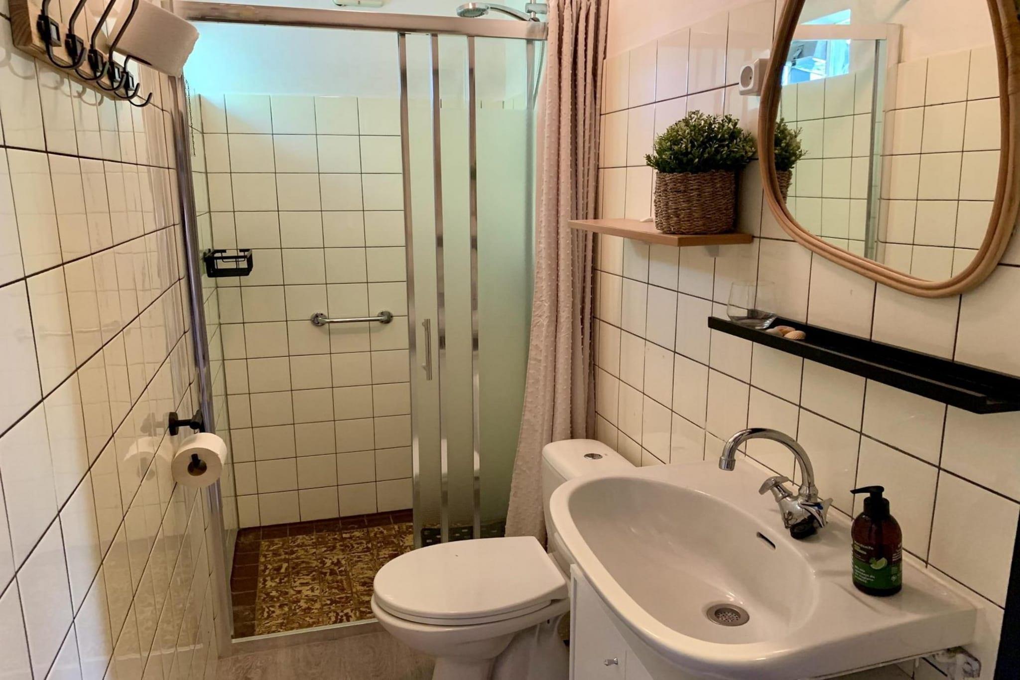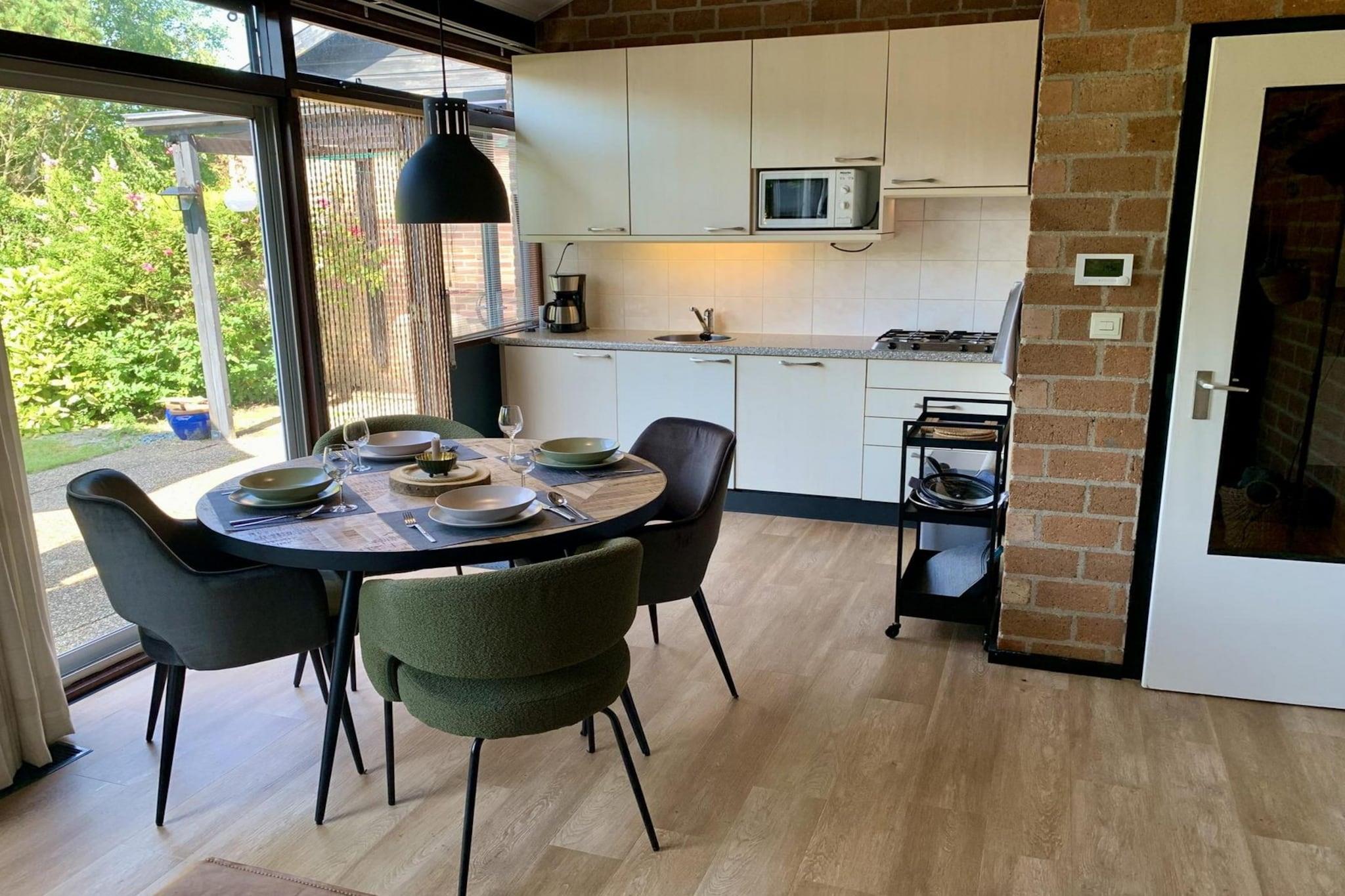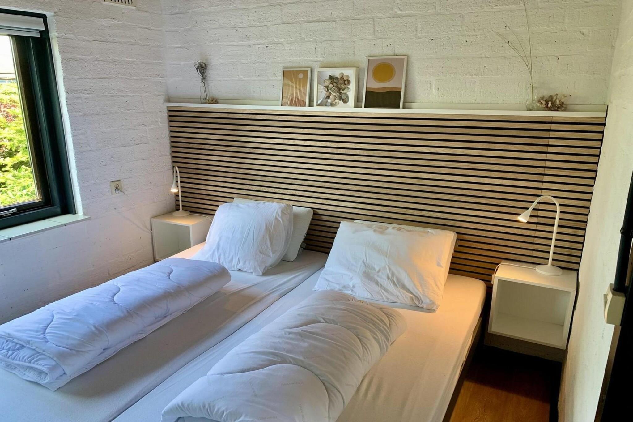 Stueetage: (Stue(Fjernsyn(Smart-TV, Hollandske TV-kanaler, Tyske TV-kanaler, Internationale TV-kanaler), spisebord, sofahjørne), åbent køkken(kakkelovn(gas), kogeplade(Komfur med fire kogeplader), elkedel, kaffemaskine(kaffetragt), mikrobølgeovn, opvaskemaskine , køle-fryseskab), soveværelse(dobbeltseng(160 x 200 cm)), soveværelse(enkeltseng(90 x 200 cm), enkeltseng(90 x 200 cm)), badeværelse(bruser, håndvask, toilet)) terrasse, have, parkering