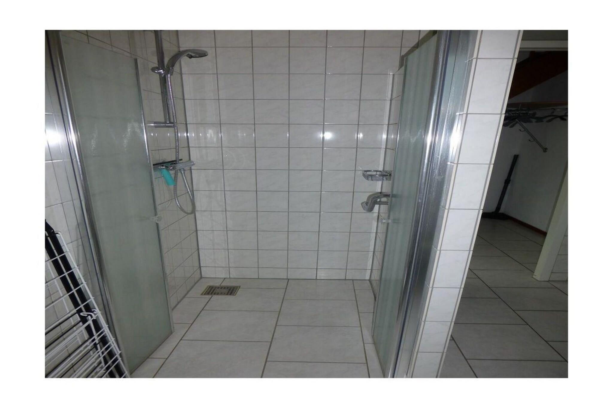 Stueetage: (Stue(Fjernsyn(Smart-TV, Hollandske TV-kanaler, Tyske TV-kanaler), spisebord, sofahjørne, radio), åbent køkken(kogeplade(induktion), elkedel, kaffemaskine(kaffetragt), ovn, mikrobølgeovn, opvaskemaskine , køle-fryseskab, ()), badeværelse(bruser, håndvask, toilet)) På 1. etage: (soveværelse(enkeltseng, enkeltseng), soveværelse(enkeltseng, enkeltseng), soveværelse(enkeltseng, enkeltseng), toilet) varme(gulvvarme), terrasse, have, parkering