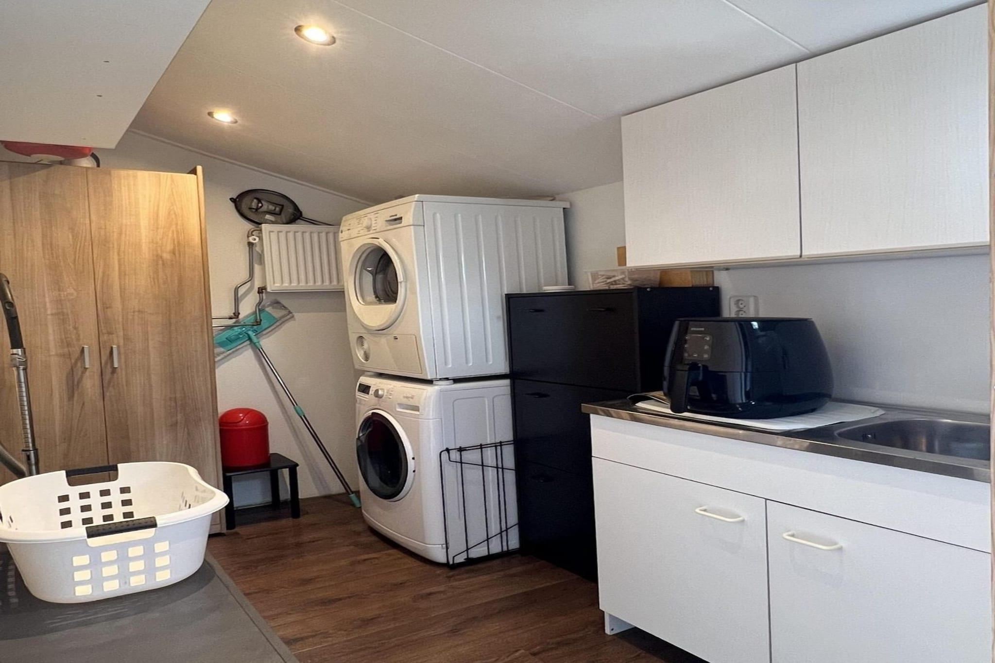 Kun en kort cykeltur fra Sint Maartenszees sandstrande tilbyder denne indbydende bungalow den perfekte blanding af komfort og afslapning. Nyrenoveret og smagfuldt indrettet byder den dig velkommen med en lys stue med hyggelige sofaer, et stort tv og en rummelig spiseplads. Det åbne køkken er fuldt udstyret med alt hvad du behøver, hvilket gør hjemmelavede måltider nemme og behagelige. Bungalowen har to soveværelser: et komfortabelt dobbeltværelse med masser af opbevaringsplads og et muntert køjesengsværelse, ideelt til børn eller venner. Et moderne badeværelse med bruseniche med regnbruser og et separat toilet sikrer bekvemmelighed for alle. Ekstraudstyr som vaskemaskine, tørretumbler, aircondition og centralvarme gør dit ophold problemfrit i enhver sæson. Træd udenfor for at nyde den fuldt lukkede have med solrig græsplæne, møbleret terrasse og hyggelige vinterhave - perfekt til afslapning fra det tidlige forår til det sene efterår. Med privat parkering til to biler, et aflåseligt skur til cykler eller strandudstyr og endda plads til dine kæledyr, er dette et sted, hvor dagene naturligt flyder mellem cykling, strandture og fredelige stunder derhjemme. Bemærk venligst! Sengelinned er ikke inkluderet som standard i din booking. Du skal medbringe dit eget eller leje det hos os for 13 euro pr. nat/ophold.
