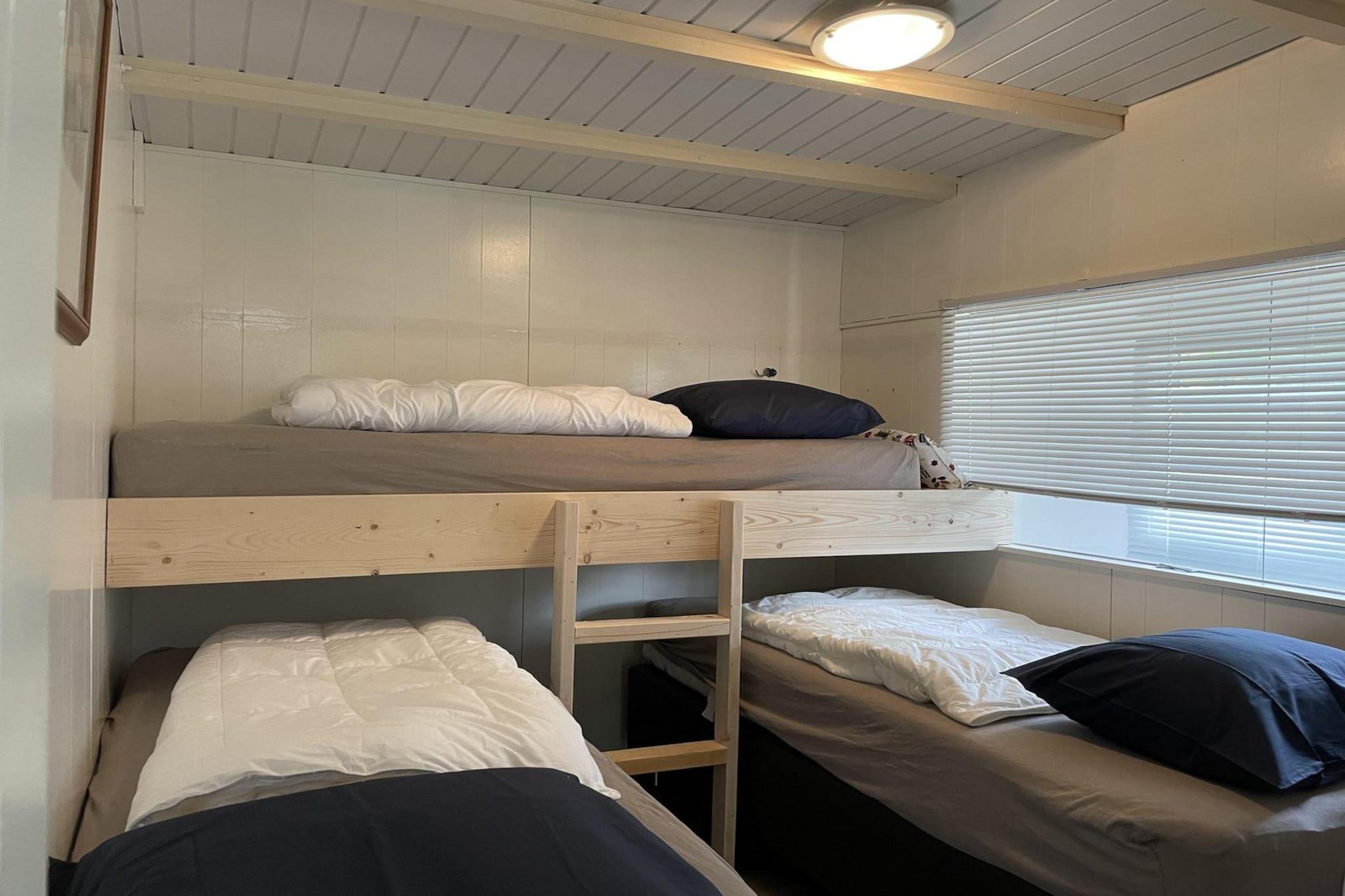 Kun en kort cykeltur eller en afslappet gåtur fra de brede sandstrande i Sint Maartenszee tilbyder denne moderne hytte den perfekte blanding af komfort og afslapning. Beliggende i en fredelig park omgivet af grønne områder, er det et vidunderligt sted for familier, par eller venner, der ønsker at nyde den hollandske kyst. Indenfor inviterer den lyse stue dig til at slå dig ned i den komfortable hjørnesofa, mens du kigger ud over haven. Aircondition sikrer et behageligt klima i alle årstider. Det åbne køkken er elegant og fuldt udstyret med alt, hvad du behøver - gaskomfur, opvaskemaskine, køleskab med fryser, mikrobølgeovn, elkedel og en filterkaffemaskine - hvilket gør madlavning derhjemme både nemt og behageligt. To soveværelser tilbyder fleksible sovearrangementer: det ene med en hyggelig dobbeltseng med boxmadras (to separate madrasser) og det andet med to enkeltsenge plus en tredje køjeseng, ideelt til børn eller venner. Badeværelset har en frisk, moderne atmosfære med et rummeligt brusebad, ny håndvask og toilet. Gå udenfor til en privat terrasse og en velholdt have med græsplæne - perfekt til morgenkaffe, dovne eftermiddage eller aftenafslapning. Selve parken tilbyder en indendørs swimmingpool, som er gratis for gæster, mens ekstra faciliteter såsom sauna, minigolf og vaskeri kan benyttes mod et mindre gebyr. Med gratis Wi-Fi, aircondition og plads til ét kæledyr er alt indrettet til et ubekymret ophold. Der er parkering i parkens centrale områder med mulighed for at læsse og losse ved hytten. Uanset om det er stranddage, cykling gennem klitterne eller rolige aftener i haven, har dette feriested alle de rigtige ingredienser til en mindeværdig ferie. Sengelinned er valgfrit og fås for EURO 13 pr. person/ophold.