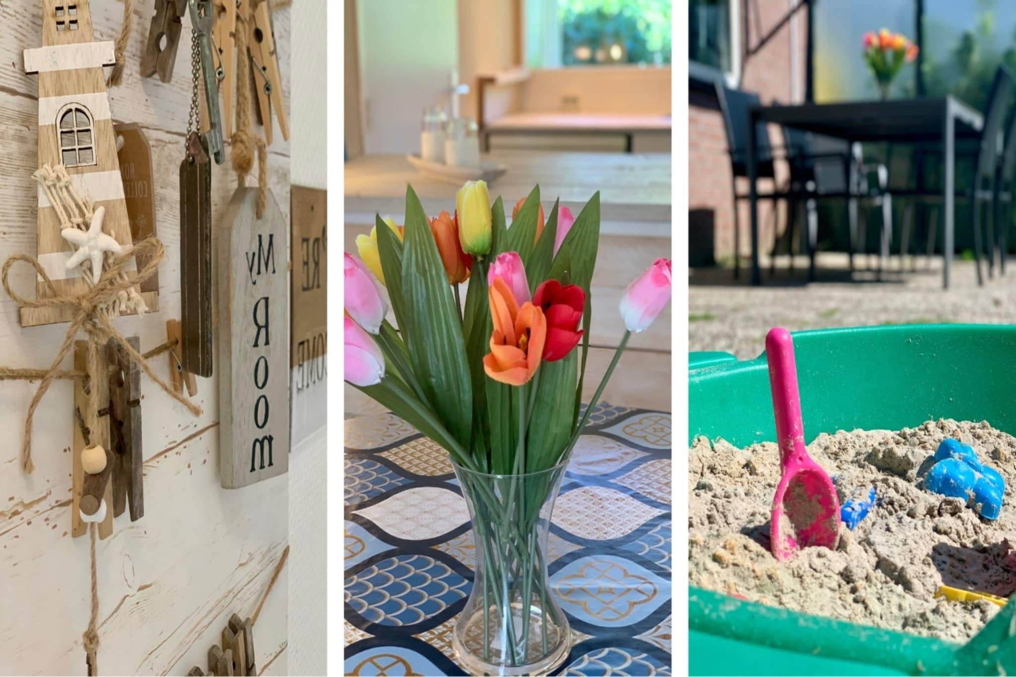 Stueetage: (Stue(Fjernsyn(Smart-TV, Hollandske TV-kanaler, Tyske TV-kanaler, Internationale TV-kanaler), sofahjørne, klimaanlæg), åbent køkken(kakkelovn, elkedel, brødrister, emhætte, kaffemaskine(kaffetragt), ovn, mikrobølgeovn, opvaskemaskine , køle-fryseskab), soveværelse(dobbeltseng(160 x 200 cm), Floor mattress), soveværelse(enkeltseng(90 x 200 cm)), soveværelse(køjeseng(90 x 200 cm), tremmeseng), badeværelse(bruser, håndvask, toilet), toilet) terrasse, have, barnestol