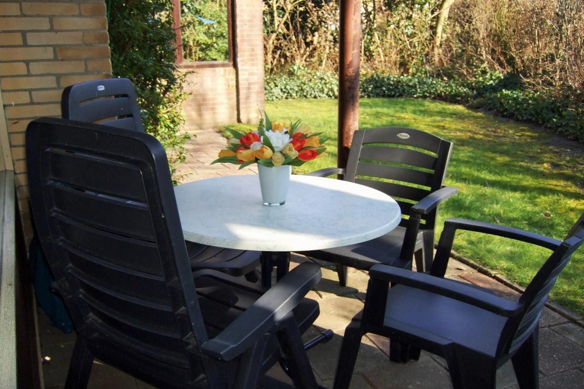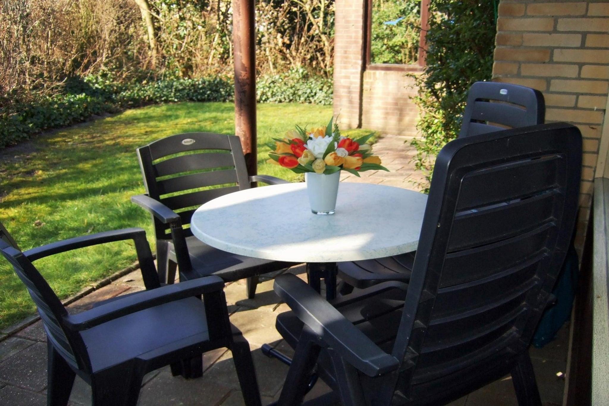 Stueetage: (Stue(Fjernsyn(Smart-TV, Hollandske TV-kanaler, Tyske TV-kanaler, Internationale TV-kanaler), spisebord, sofahjørne, DVD-afspiller), åbent køkken(kogeplade(glaskeramisk), elkedel, brødrister, emhætte, kaffemaskine(kaffetragt), ovn, mikrobølgeovn, opvaskemaskine , køle-fryseskab), soveværelse(dobbeltseng(140 x 200 cm)), soveværelse(køjeseng(80 x 200 cm)), badeværelse(bruser, håndvask, toilet)) varme(central), terrasse, have, barnestol
