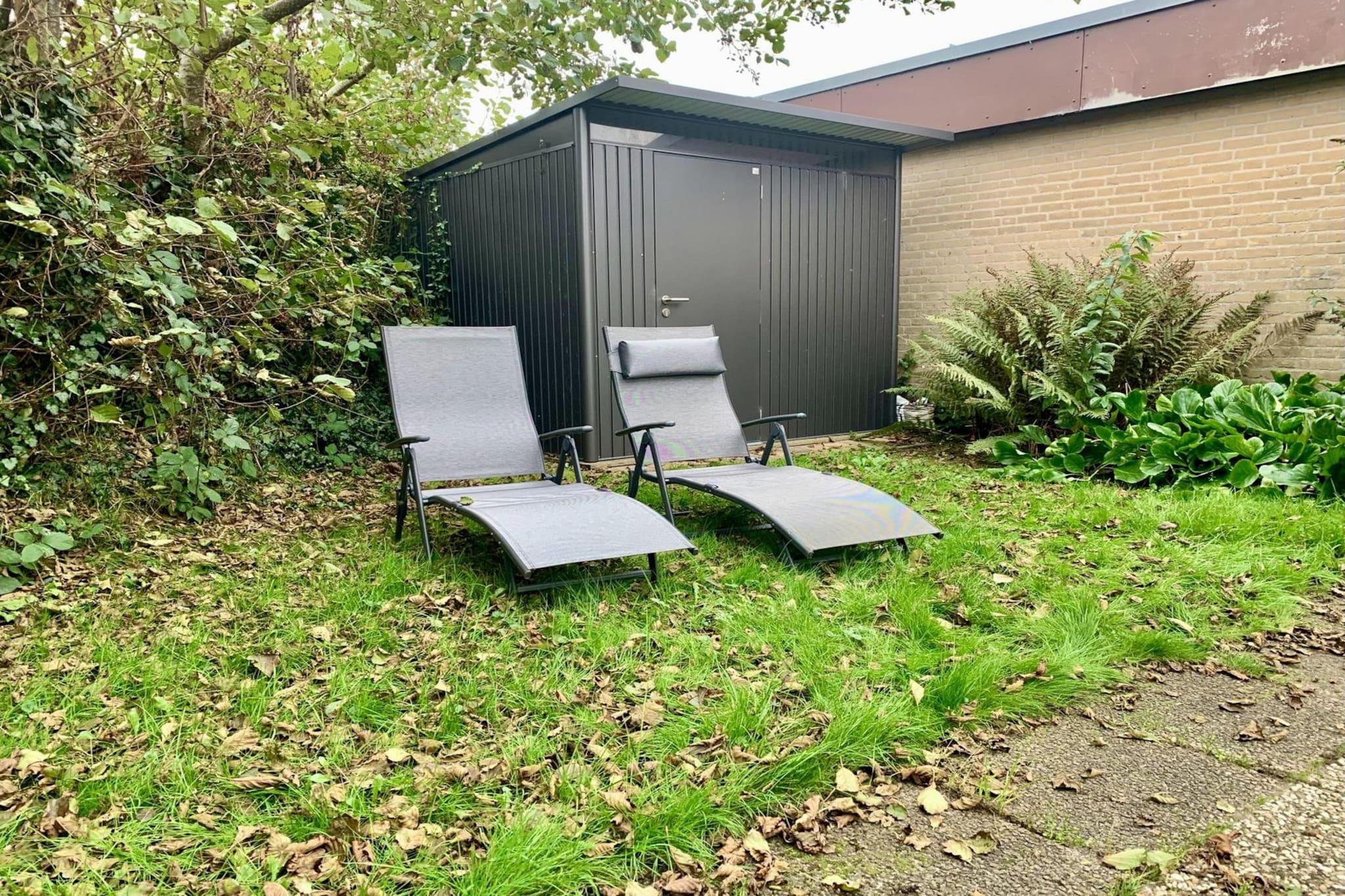 Stueetage: (åbent køkken(kogeplade(Komfur med fire kogeplader, gas), elkedel, brødrister, emhætte, ovn, mikrobølgeovn, opvaskemaskine , køle-fryseskab), Stue/soveværelse(Fjernsyn(kabel, Hollandske TV-kanaler, Tyske TV-kanaler), spisebord, sofahjørne), soveværelse(dobbeltseng), soveværelse(køjeseng), badeværelse(bruser(Walk-in-bruser), håndvask), toilet(håndvask, toilet)) vaskemaskine, patio, varme(central), terrasse, have, cykelopbevaring, havemøbler, solstole, parkering, strygebræt, strygejern