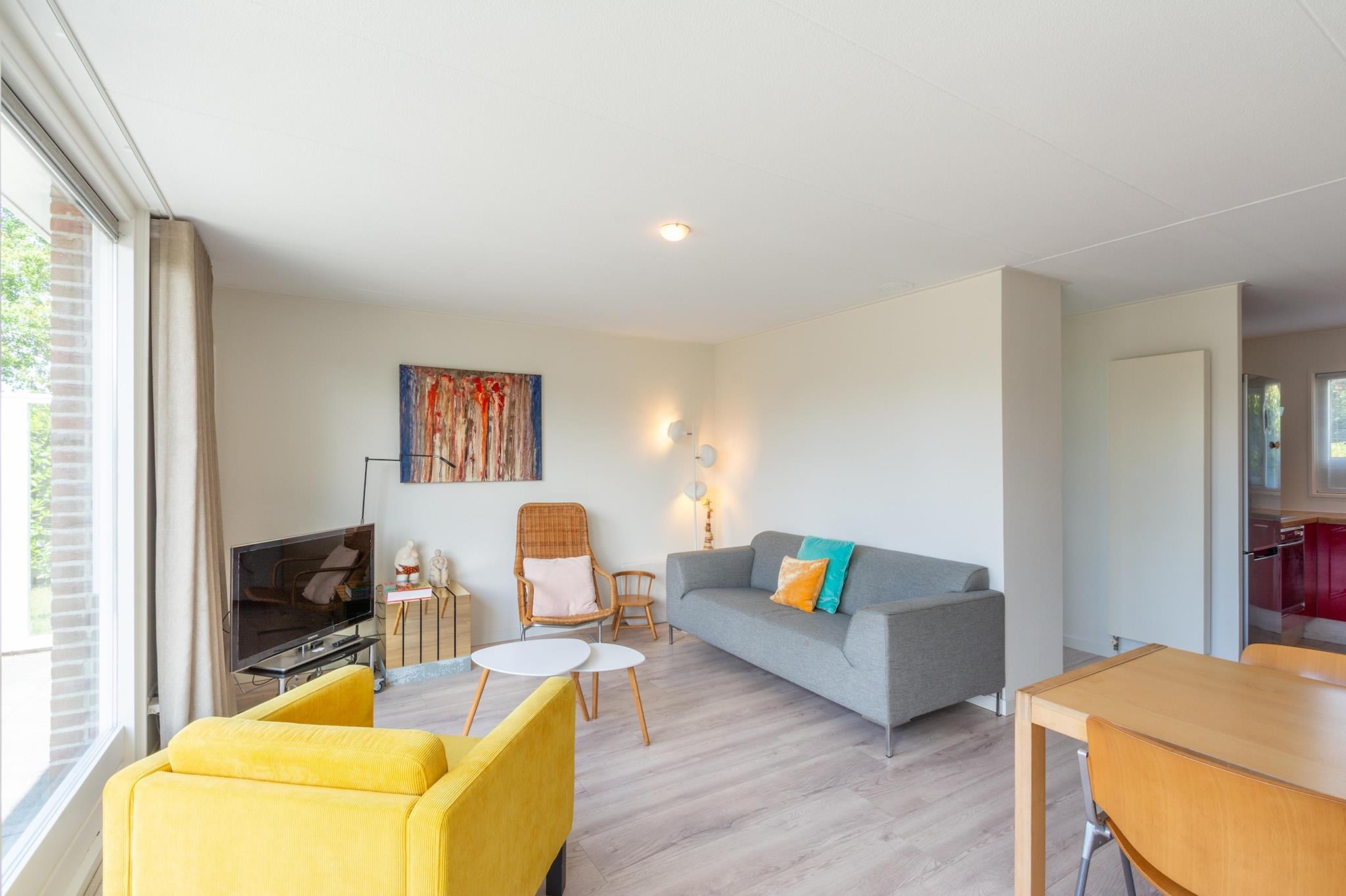 Et virkelig smukt hus til alle årstider! Eureka 27 er et hyggeligt feriehus med masser af naturligt lys. Det er en bungalow til fire personer med en moderne stue med komfortabel sidde- og spiseplads. Køkkenet er fuldt udstyret med ovn og opvaskemaskine. Feriehuset har to soveværelser: et med dobbeltseng og et børneværelse med udtræksseng til to personer. Det dejlige badeværelse har bruseniche, håndvask og vaskemaskine. Der er også et separat toilet. Den rummelige, indhegnede have tilbyder dejlige steder at nyde solen i alle årstider. Der er en gynge til børnene. Dette fuldender virkelig ferieoplevelsen for hele familien! Der er parkering ved siden af huset. Maksimalt én hund er tilladt. Et virkelig smukt hus til en dejlig ferie!