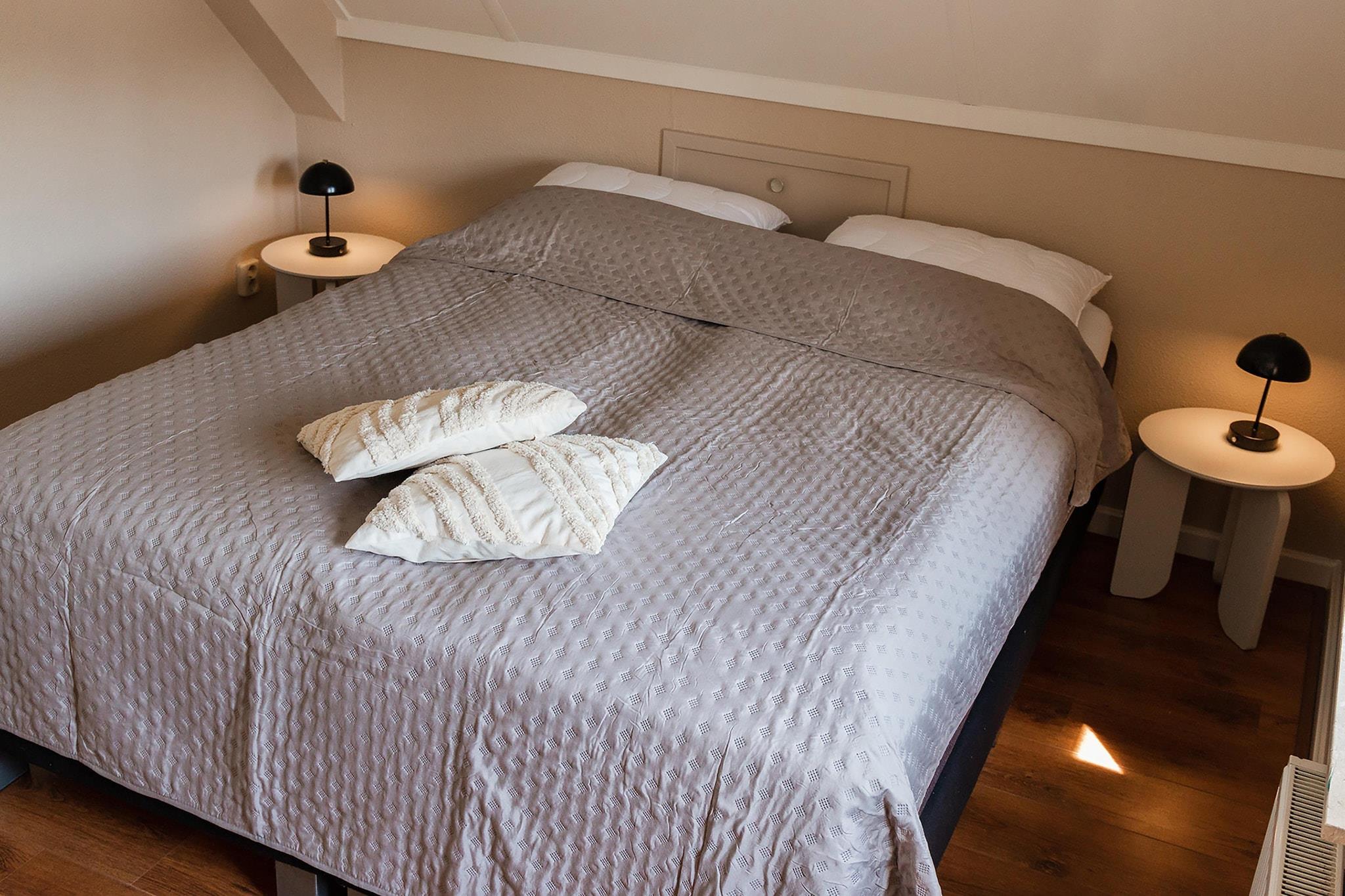 Velkommen til dit ideelle frisiske gemmested! Denne charmerende og velindrettede bungalow er perfekt til op til 4 gæster, der søger et afslappende tilflugtssted i naturen. Beliggende i en stille, lille park nær Sondel, har hjemmet en lys stue med et hyggeligt opholdsområde og tv - perfekt til at slappe af efter en dag med udforskning. Det åbne køkken er fuldt udstyret med moderne apparater, hvilket gør det nemt at tilberede måltider og nyde dem i ro og mag. Ovenpå byder to rummelige soveværelser og et elegant badeværelse på afslappende nætter og forfriskende morgener. Bemærk venligst: kæledyr er ikke tilladt, hvilket gør dette til et fremragende valg for gæster med allergier eller dem, der søger et kæledyrsfrit miljø. Omgivet af bølgende bakker, skove, enge og søer tilbyder denne beliggenhed i hjertet af Gaasterland en unik blanding af hollandsk charme og udendørs eventyr. Cykel langs den berømte Elfstedentocht-rute, padle over Slotermeer (kun 5 km væk), eller udforsk de historiske byer Lemmer, Sloten og Hindeloopen. Naturelskere vil nyde vandrestierne gennem nærliggende skove kun 1 km væk, mens historieinteresserede kan besøge det UNESCO-listede Woudagemaal i Lemmer. Efter en dag med udforskning kan du forkæle dig selv på en af de lokale restauranter i nærliggende Lemmer eller Oudemirdum. Nyd frisk fisk, hollandske specialiteter eller et glas vin på en hyggelig terrasse med udsigt over vandet. Tilbage ved bungalowen kan du slappe af på din private haveterrasse, mens solen går ned over det fredelige landskab. Uanset om du er her for ro eller eventyr, tilbyder dette sted det bedste af begge dele - uden støj og uden kæledyr.