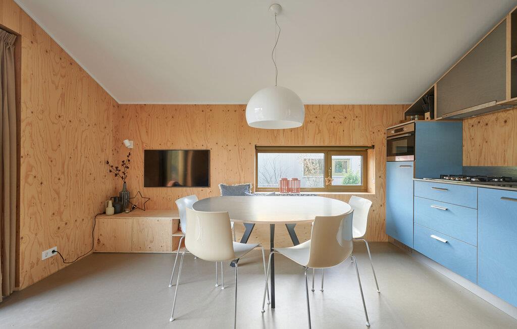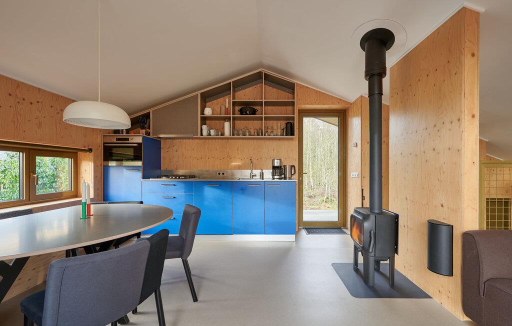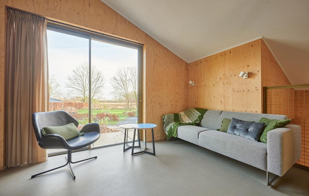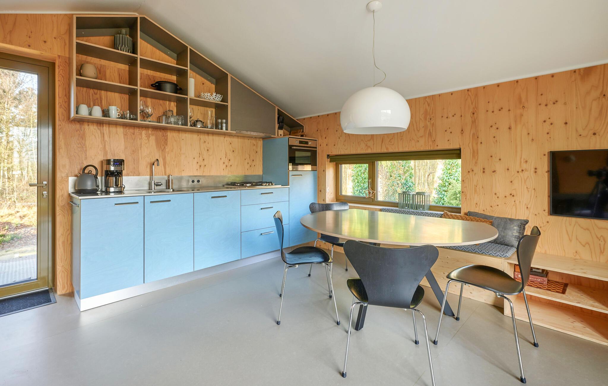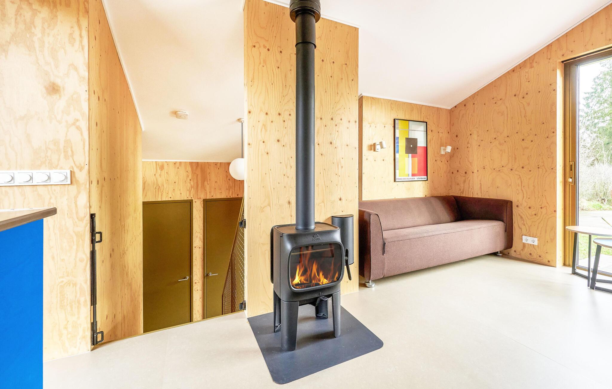 Velkommen til dette indbydende og moderne tre-etagers hjem. Det arkitektonisk legende design tilbyder en unik rumlig oplevelse og er omhyggeligt indrettet i en moderne og minimalistisk stil. Her kan I undslippe hverdagens stress og jag og slappe helt af i smuk natur. Det farverige, fuldt udstyrede køkken lægger op til at tilberede lækre måltider. Saml jer om det særlige spisebord, slap af i sofaen med en god film eller nyd varmen fra brændeovnen om aftenen. Fra stuen har man en smuk udsigt over skoven og naturreservatet Terhorsterzand med sine heder, skove og hede.