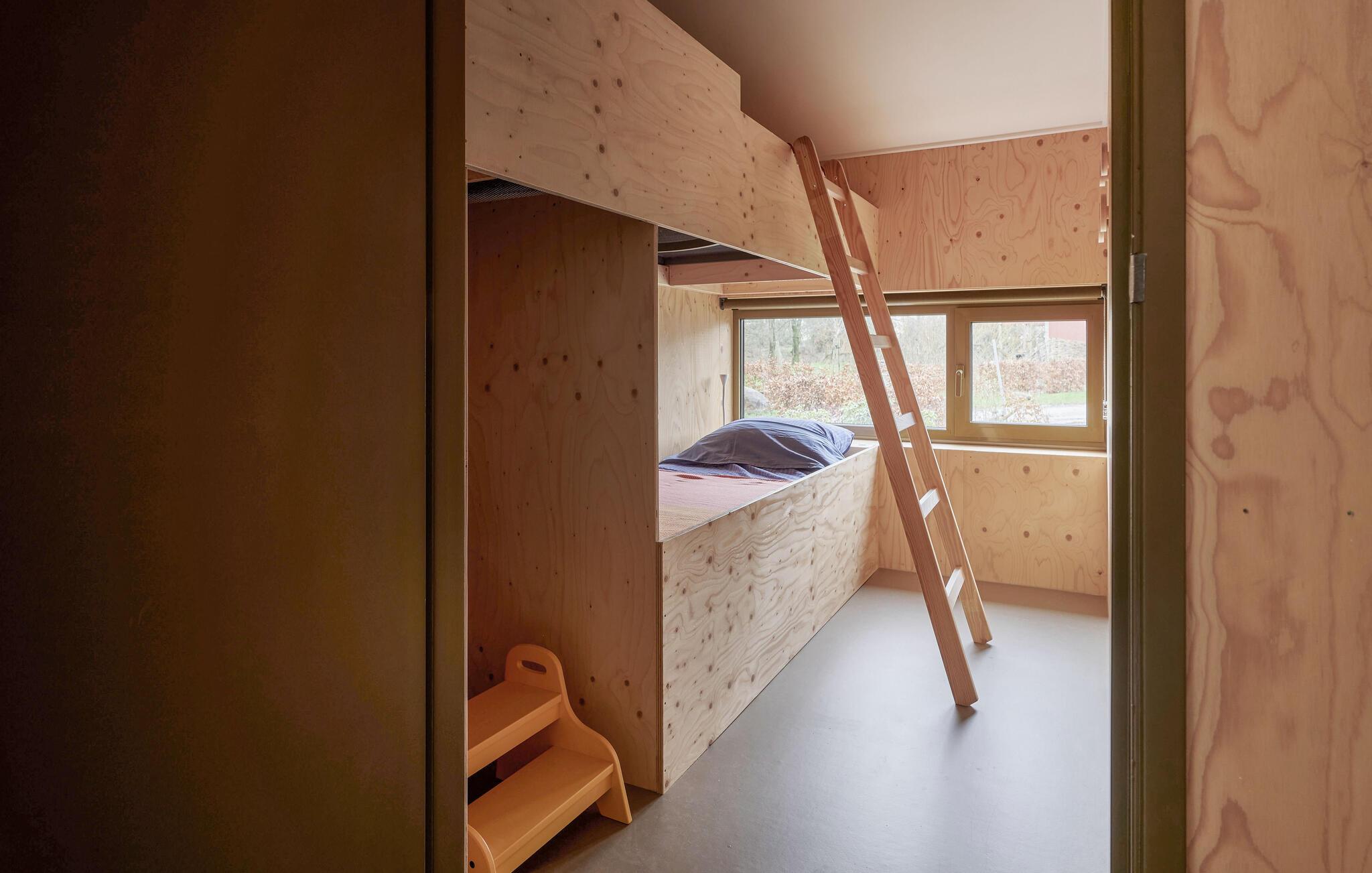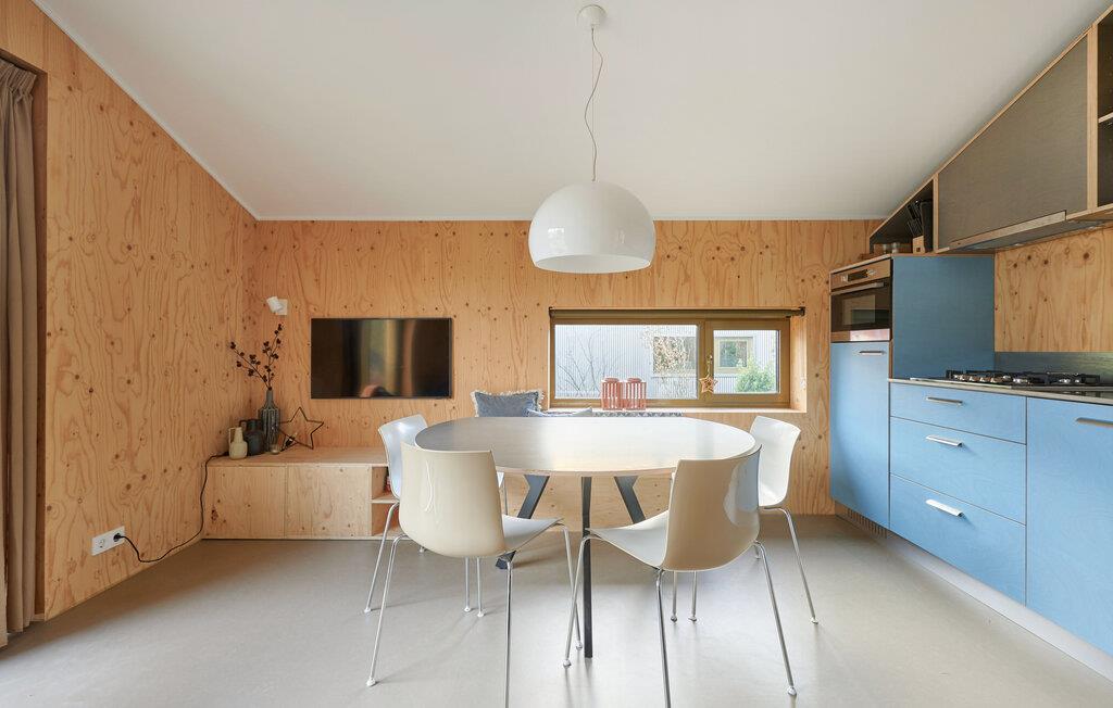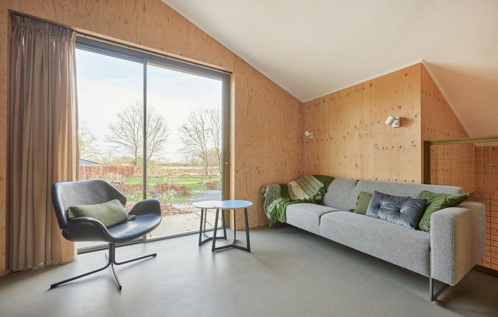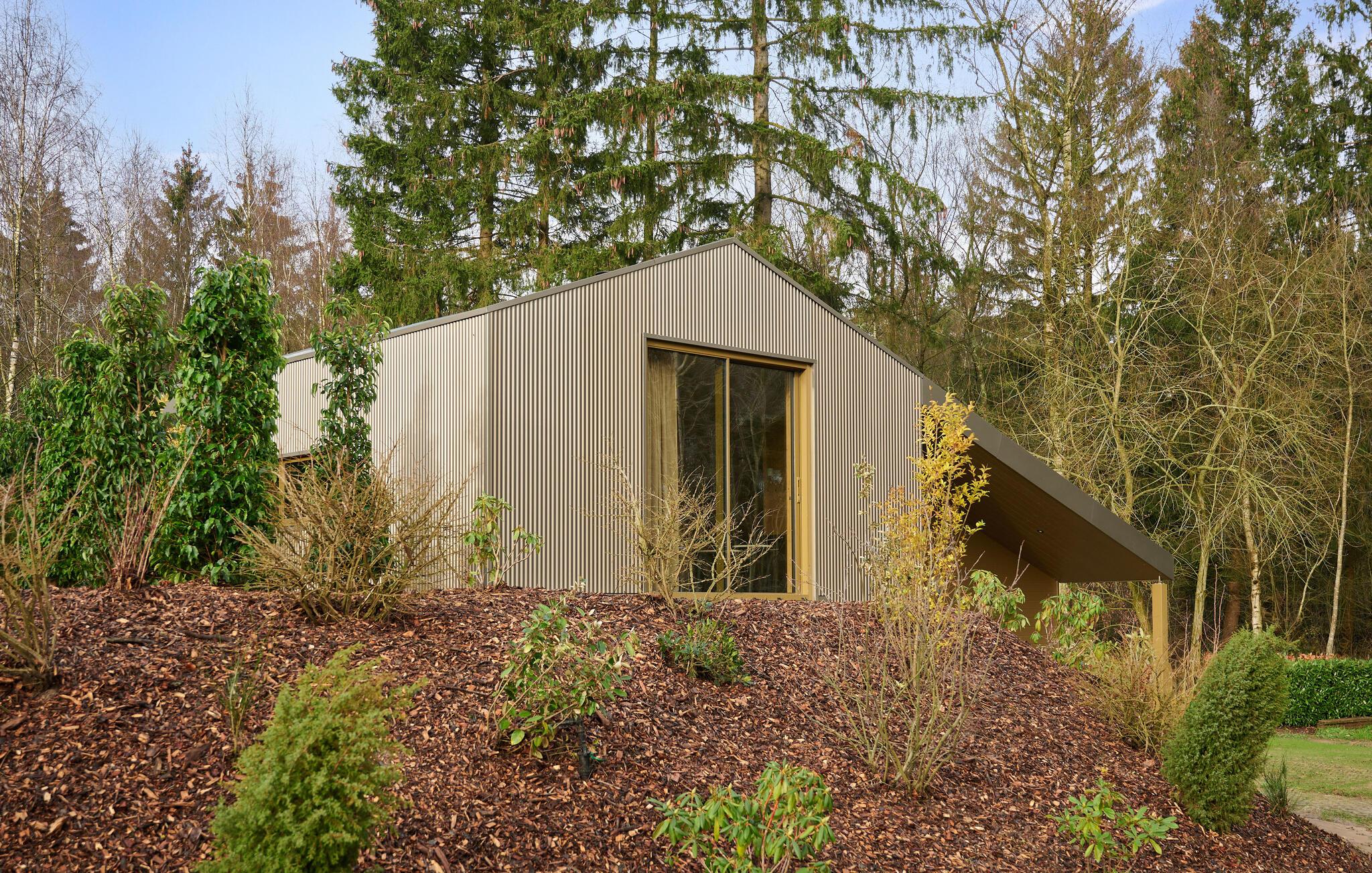 Velkommen til dette indbydende og moderne tre-etagers hjem. Det arkitektonisk legende design byder på en unik rumlig oplevelse og er omhyggeligt indrettet i en moderne og minimalistisk stil. Her kan I undslippe hverdagens stress og jag og slappe helt af i smuk natur. Det farverige, fuldt udstyrede køkken lægger op til at tilberede lækre måltider. Saml jer om det særlige spisebord, slap af i sofaen med en god film eller nyd varmen fra brændeovnen om aftenen. Fra stuen har man en smuk udsigt over skoven og naturreservatet Terhorsterzand med sine heder, skove og hede.