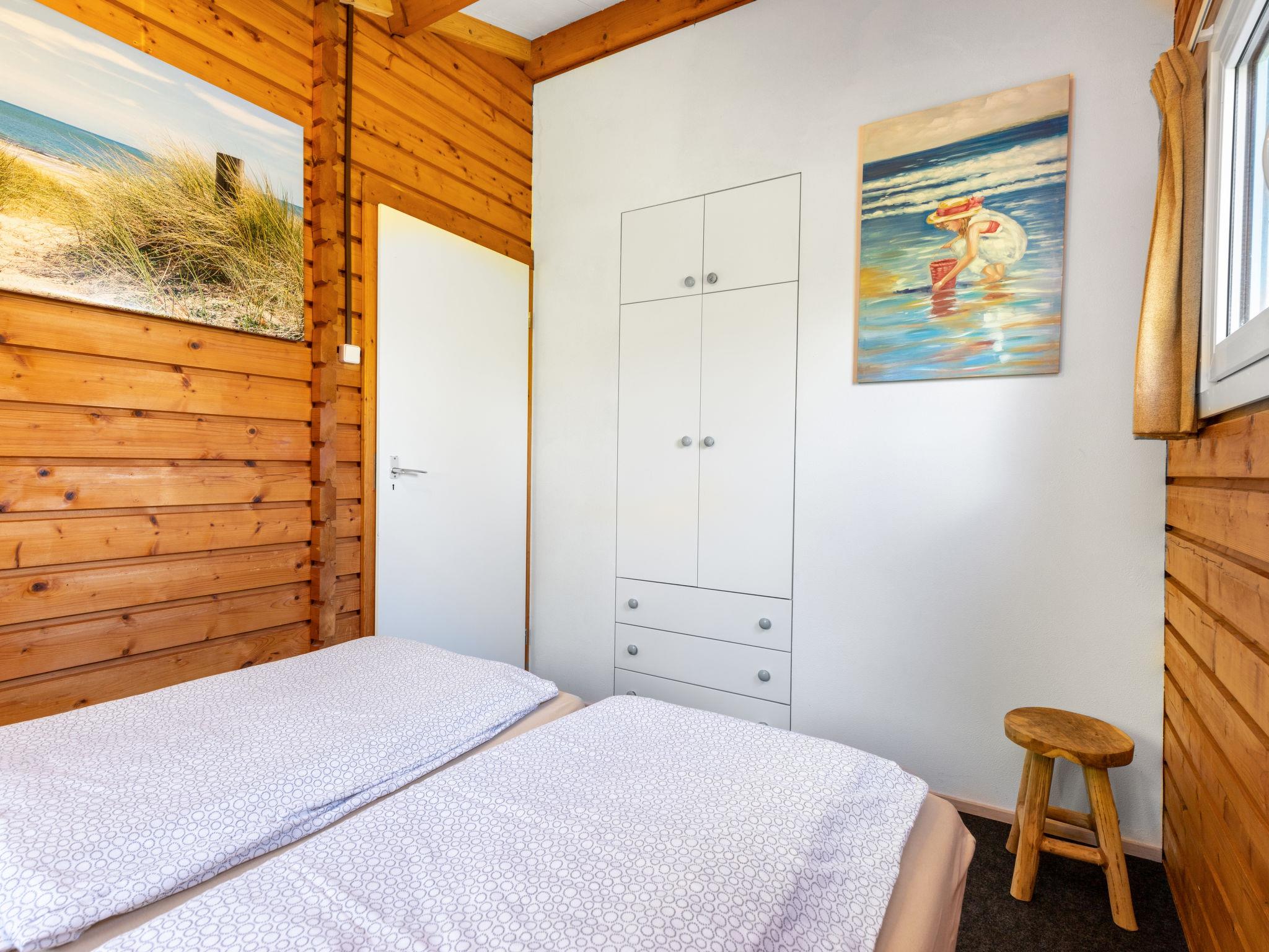 "Rusthoeve 14", 3-room chalet 57 m2. Simple and practical furnishings: open living/dining room with TV. Exit to the garden. 1 room with 1 french bed (2 x 80 cm, length 200 cm). 1 children's room with 1 x 2 bunk beds. Small, open kitchen (4 hot plates, oven, electric coffee machine). Shower/WC. Gas heating. Terrace, garden. Terrace furniture. Facilities: Internet (WiFi, free). Please note: non-smokers only. Smoke alarm. During high season it is not allowed to bring pets.