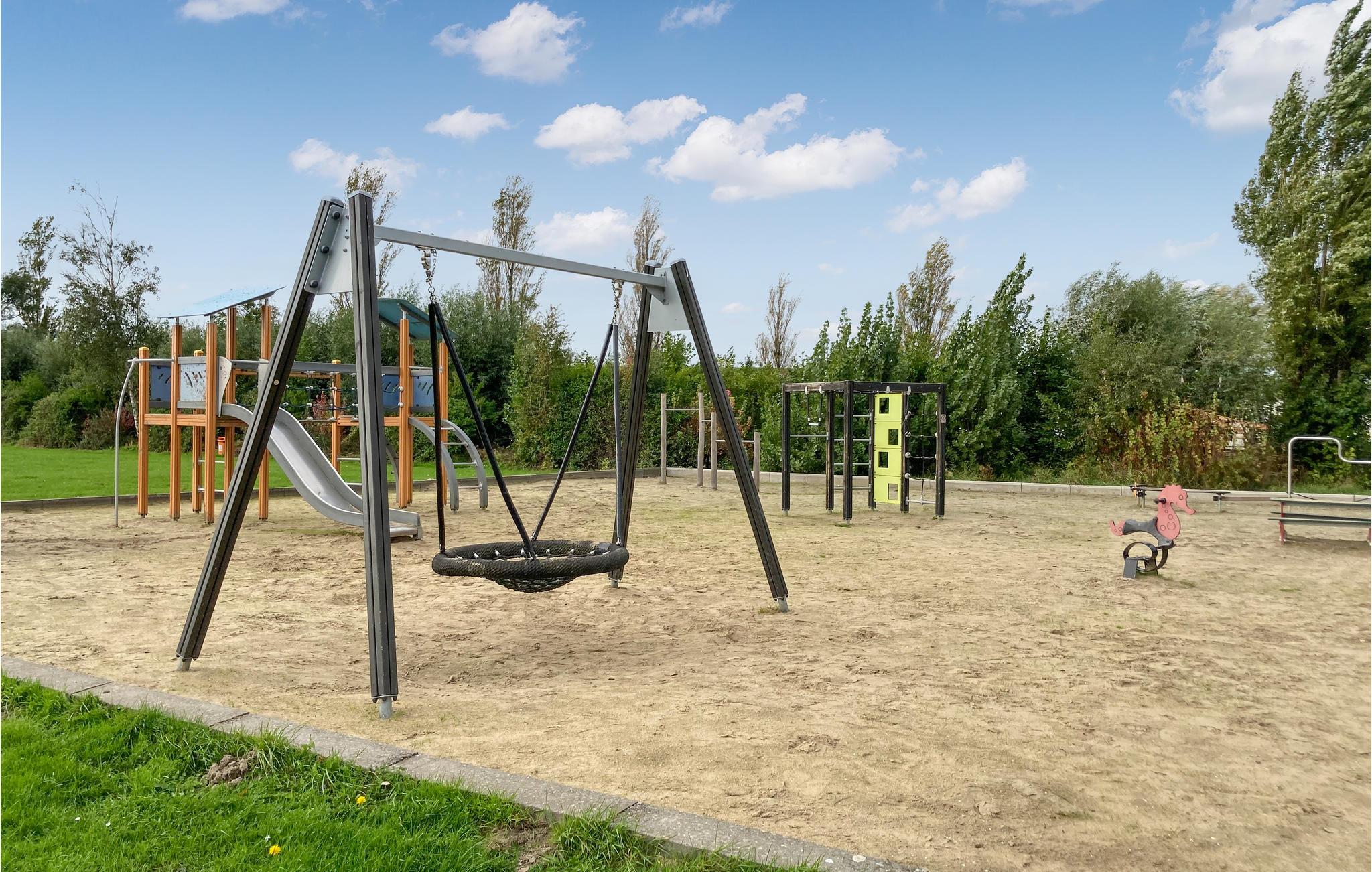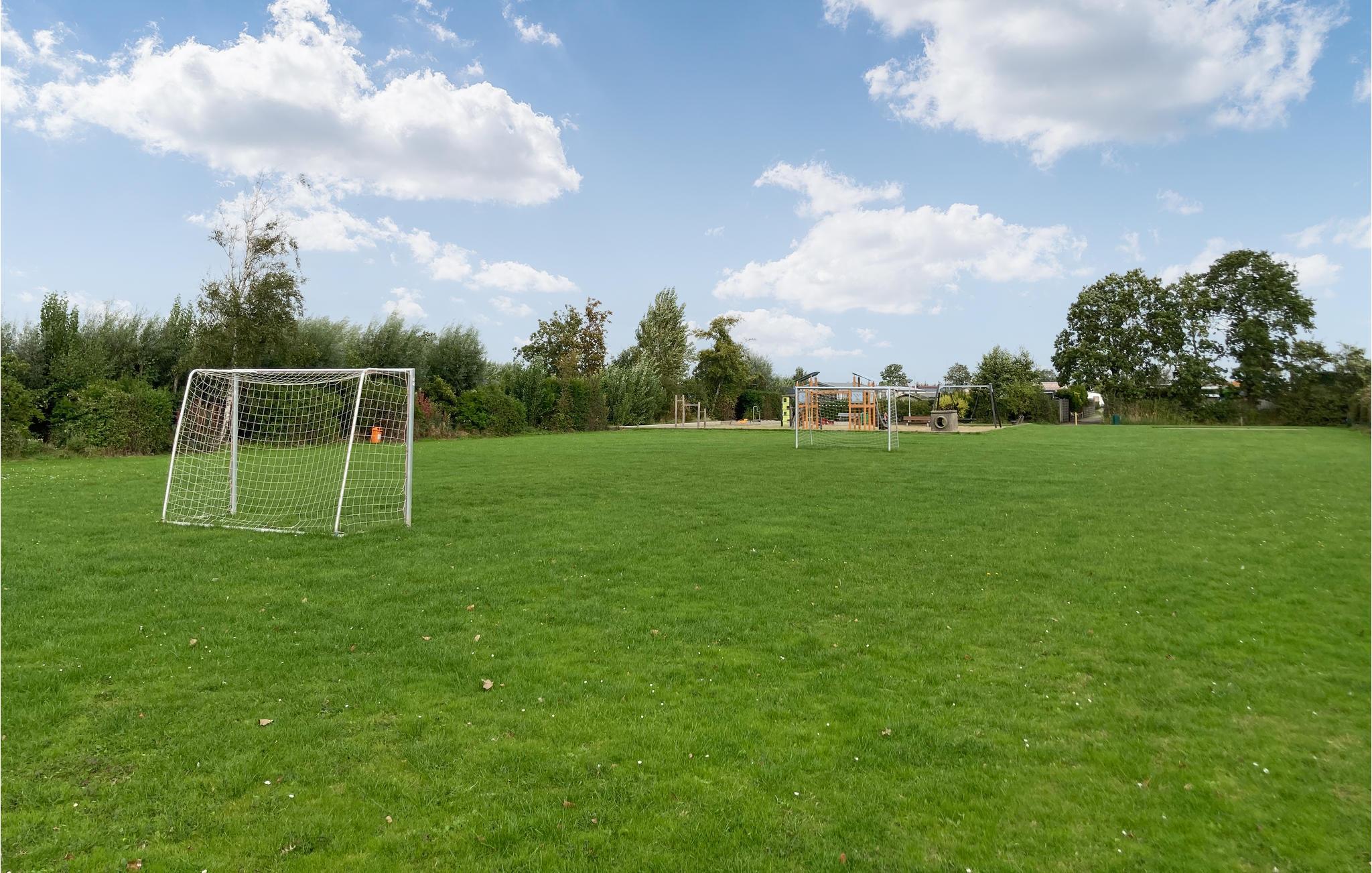 Når vejret er varmt, kan I benytte den fælles pool eller se børnene lege på legepladsen eller spille fodbold.
