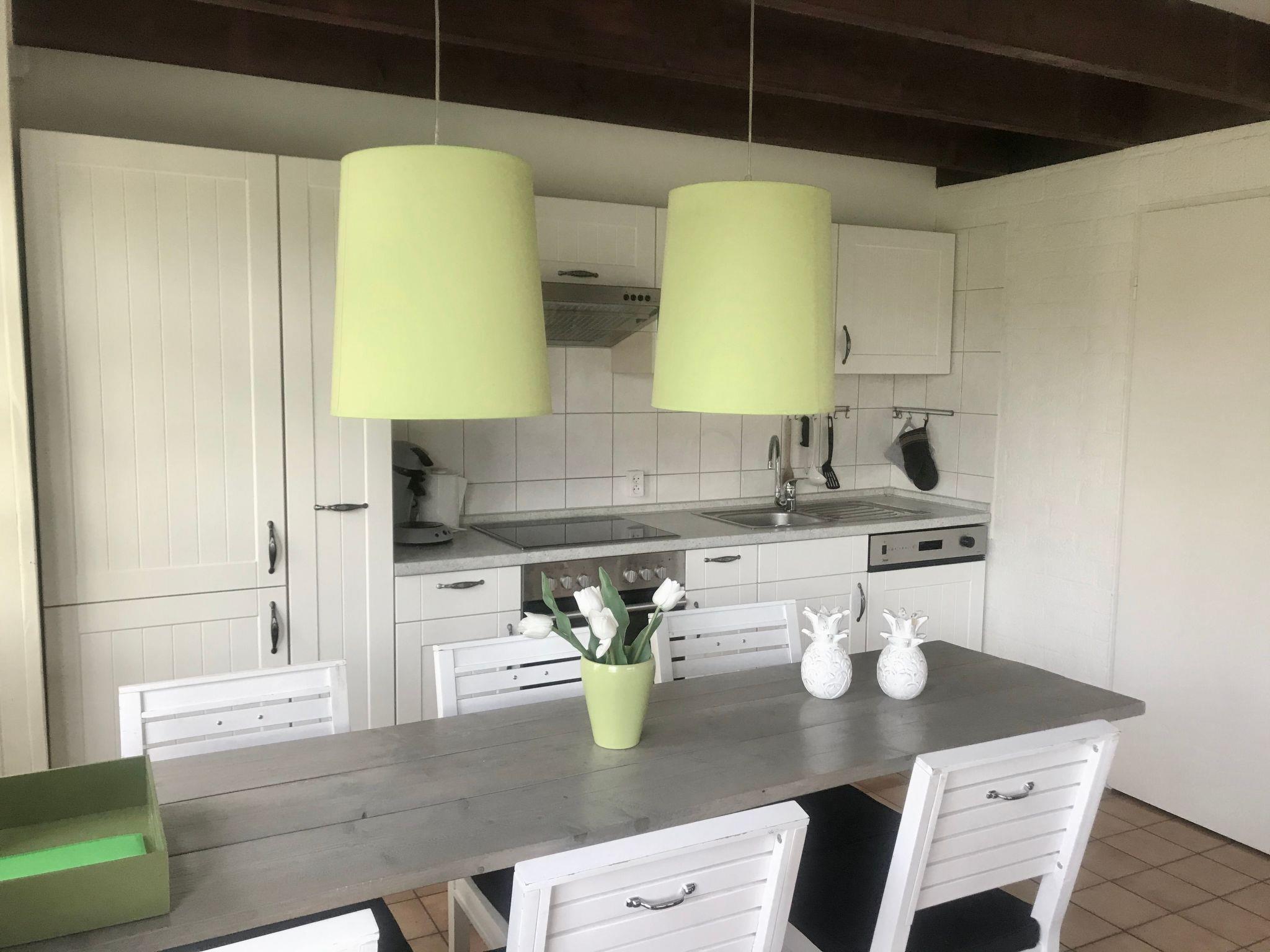 The open kitchen is modern and fully equipped with all the amenities you need. Here you'll find a dishwasher, microwave, oven, coffee maker (pads), kettle, fridge-freezer, and a four-burner stove. The kitchen is stocked with more than enough kitchenware and stylish dishes, making cooking a breeze.