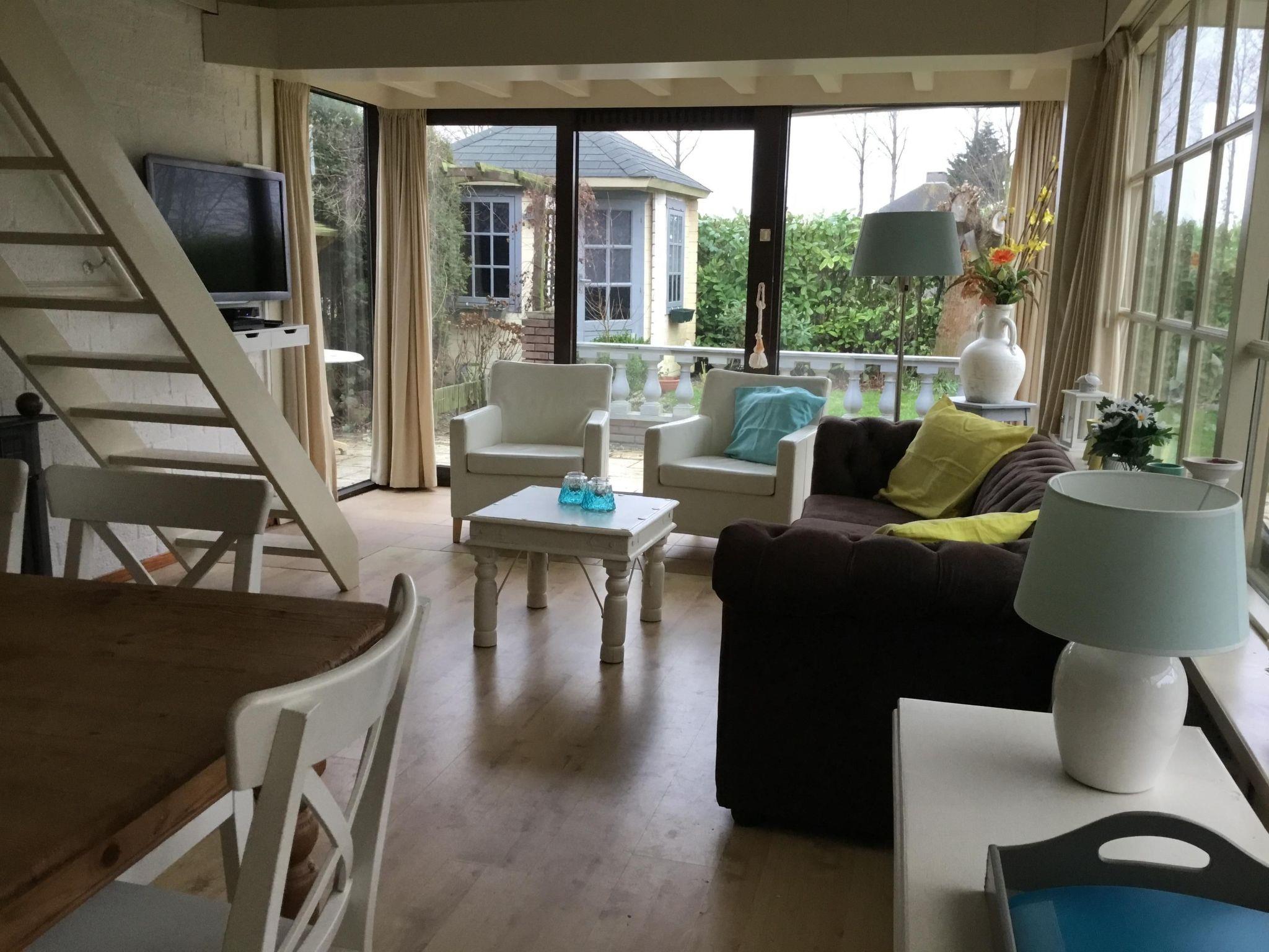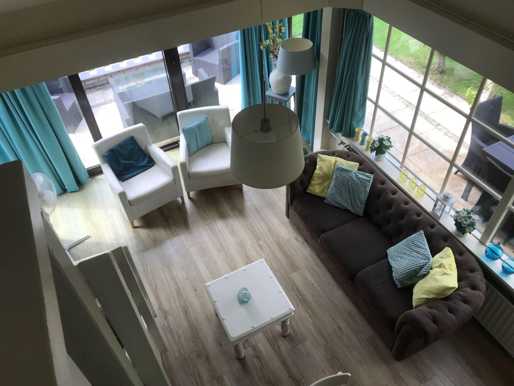 Discover the coziness of our charming 75 m2 bungalow, suitable for up to six people and equipped with all conveniences. This spacious home welcomes you with a comfortable living room and a nostalgic open kitchen. On the ground floor, you'll find the open living and dining room, furnished with a comfortable sofa, two armchairs, a coffee table, a flat-screen TV, and a dining table with six chairs. Enjoy the snug decor in this atmospheric space and the free WIFI and TV with an extensive choice of channels. Board games are available for relaxation.