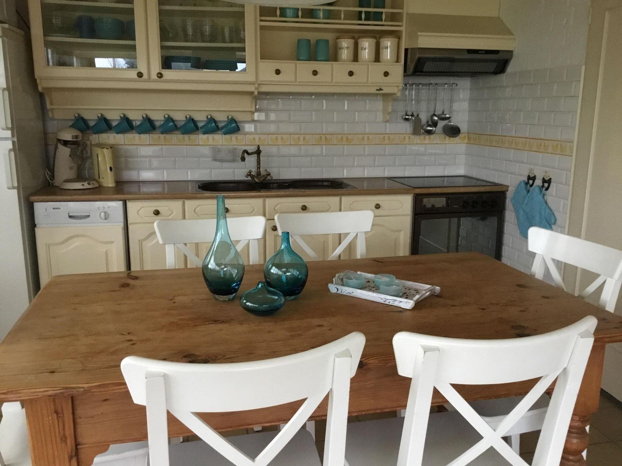 The traditional open kitchen is fully equipped with all the amenities you need. Here, you'll find a dishwasher, microwave, oven, coffee maker (pads), kettle, fridge-freezer, and a four-burner stove. The kitchen is stocked with more than enough kitchenware and charming crockery, making cooking a breeze.