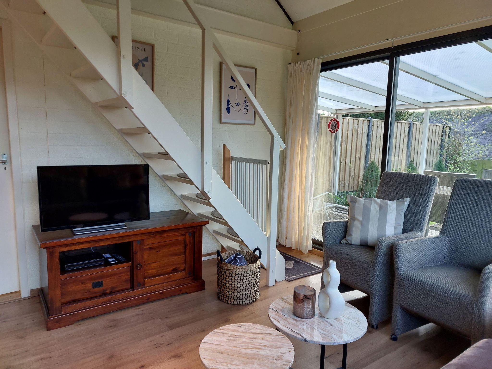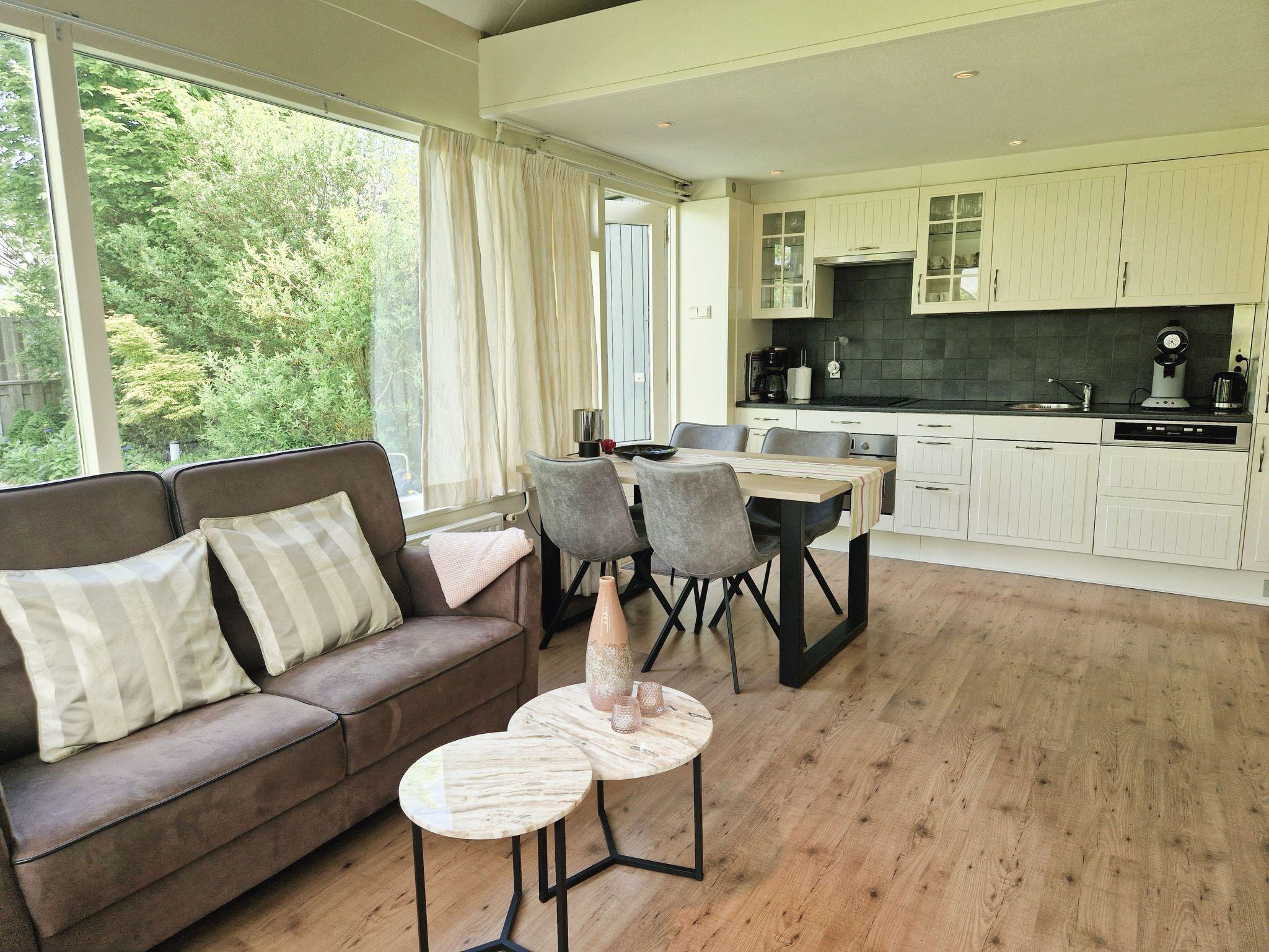 The spacious, sunny garden is fully fenced and offers plenty of privacy, making it ideal for dogs and small children. A large, covered veranda next to barbecue facilities, a dining table for six and sun loungers invite you to spend relaxing hours outdoors. The holiday park in which the bungalow is located is car-free (except for the car park areas) and offers a seasonal swimming pool, playground, trampoline and other amenities as well as a restaurant with an outdoor terrace.