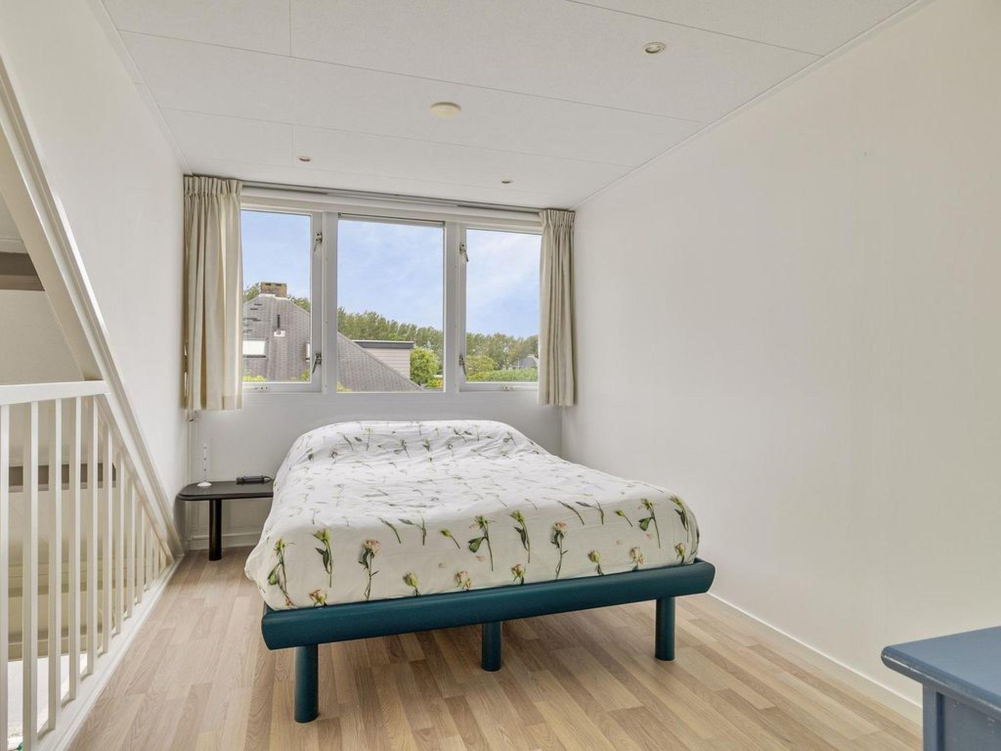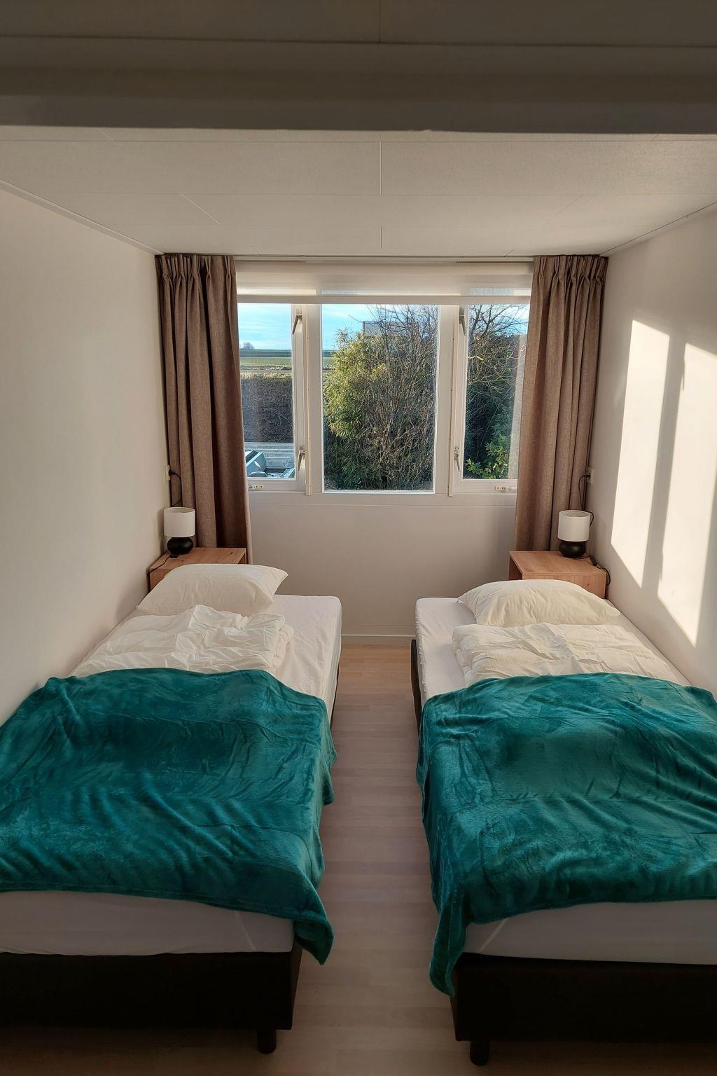From the living room you reach the bedroom on the ground floor, which is about 12.5 m2. The bedroom has 2 single box springs measuring 90cm x 200cm. These can easily be placed together as a large double bed.