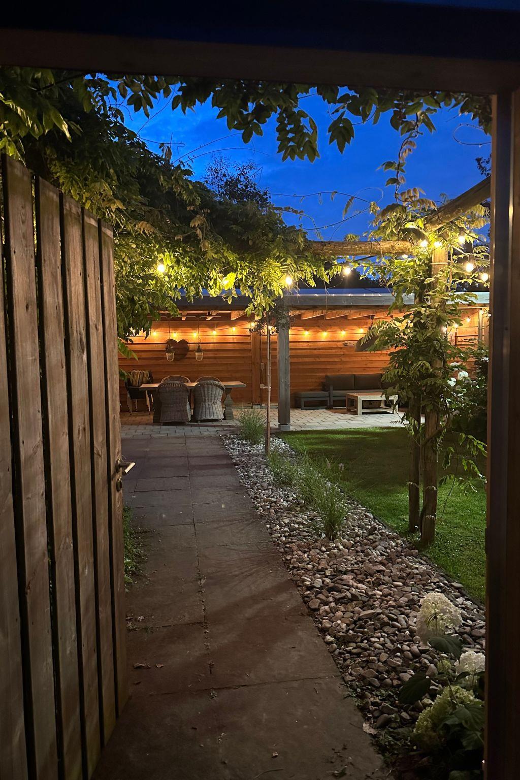 Outside, the garden is fully fenced and lockable, so lots of privacy. With atmospheric lights that are on a timer.