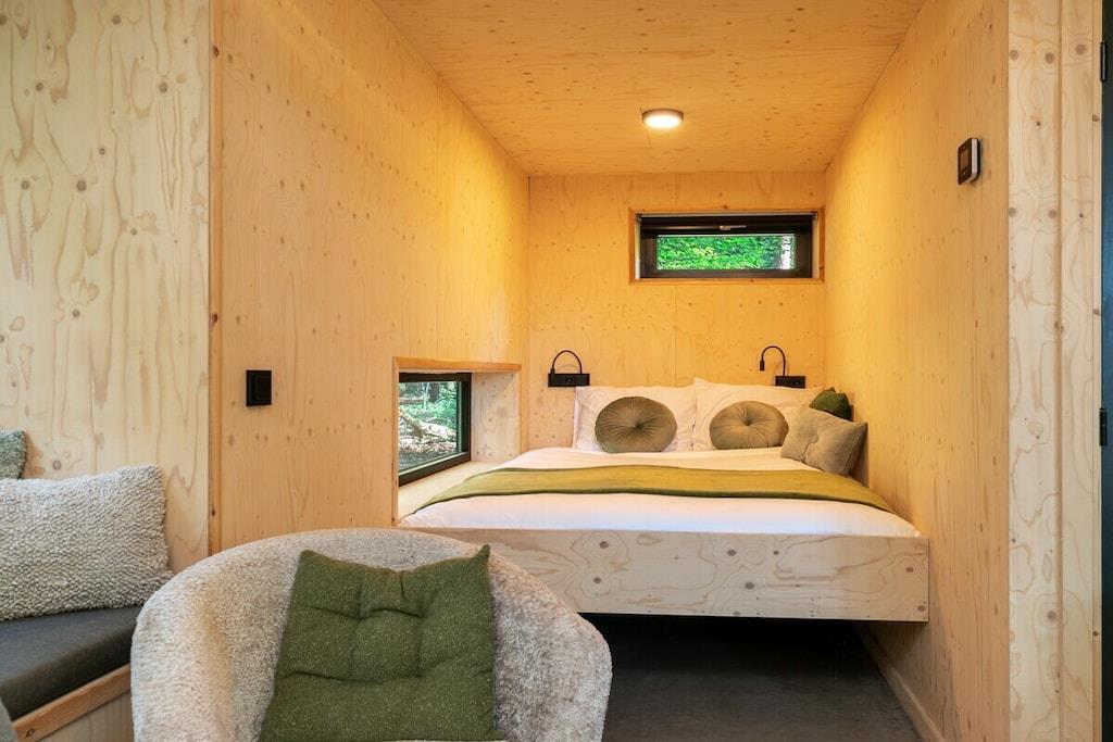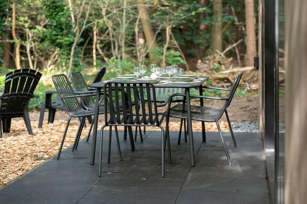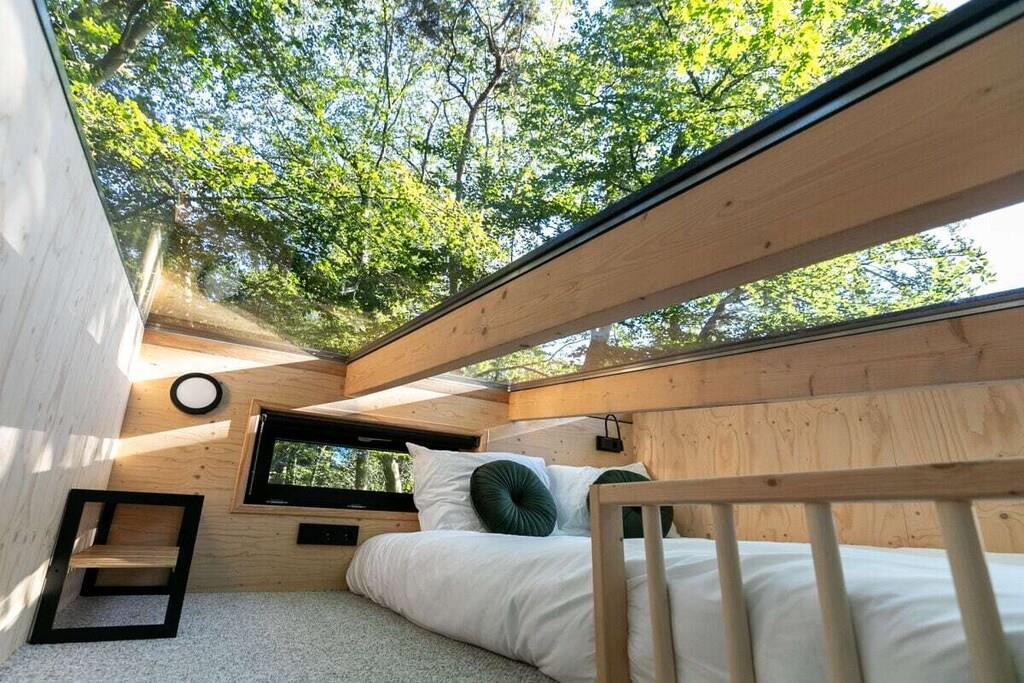 Sov i den luksuriøse dobbeltseng i alkoven med udsigt over skoven. Eller nyd romantiske nætter for to på hemsen under stjernerne og trætoppene. Der er også et soveværelse med en køjeseng. En oase af fred og luksus, smukt beliggende i Teteringen-skoven, mellem Breda og Oosterhout. Lige ved siden af De Haenen Golf Park, mountainbike-ruter og vandrestier, tilbyder dette hus med regnbruser og spabad den perfekte base for golfentusiaster, (eventyrlystne) cyklister, vandrere og besøgende i den pulserende by Breda.