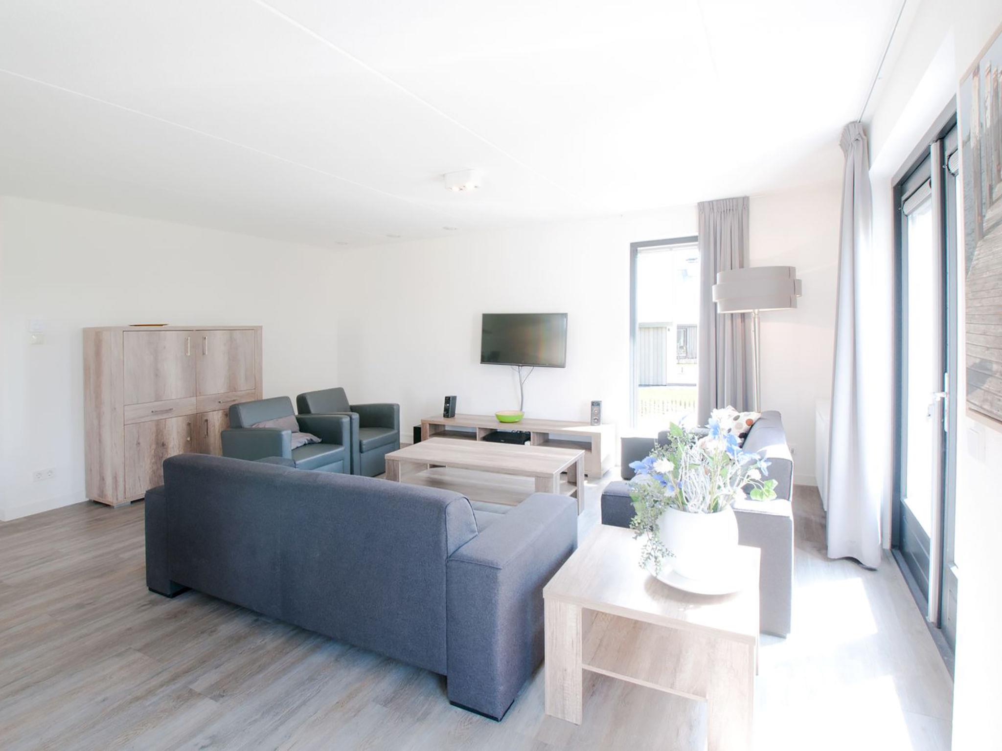 "Oesterdam 12", 7-room house 104 m2 on 2 levels. Comfortable furnishings: entrance hall with separate WC. Living/dining room with flat screen. Exit to the terrace. 2 double bedrooms, each room with 2 beds. Open kitchen (5 hot plates, dishwasher, kettle, electric coffee machine, combination microwave) with dining table. Shower. Heating. Upper floor: 4 double bedrooms with sloping ceilings, each room with 2 beds. Bath/shower/WC, double hand-basin. Terrace. Terrace furniture. Facilities: Internet (WiFi, free). Parking (3 cars) at the house. Please note: non-smoking house. Smoke alarm.