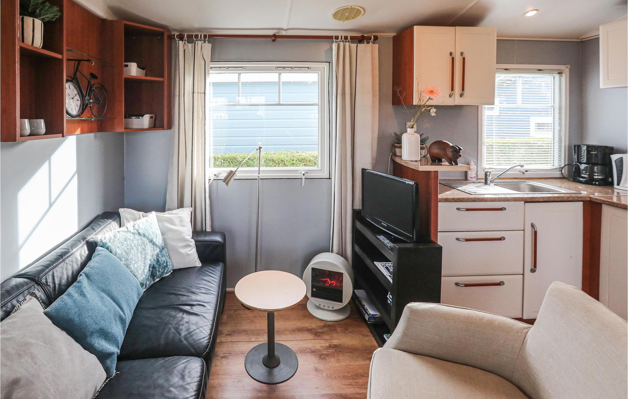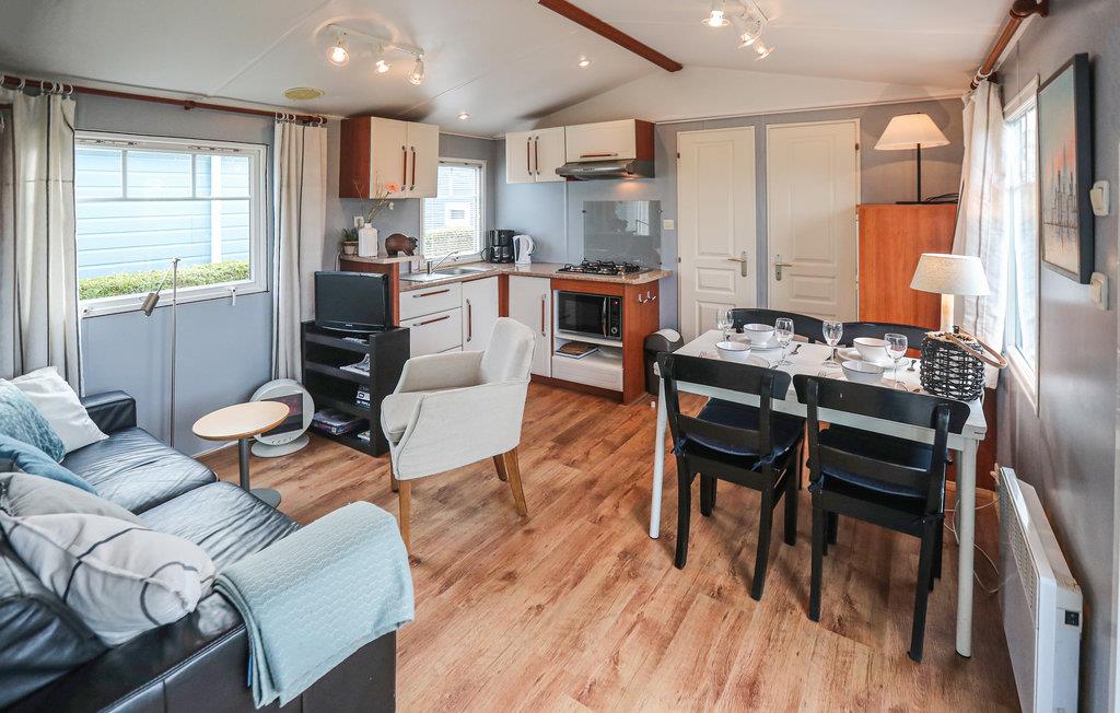 Huset har to soveværelser, et med en dobbeltseng og et med to enkeltsenge. Den hyggelige stue har et dejligt spisebord, et opholdsområde og et åbent køkken. Badeværelset har indgang fra stuen og soveværelset og har et brusebad og håndvask. Et separat toilet er på den anden side af stuen.